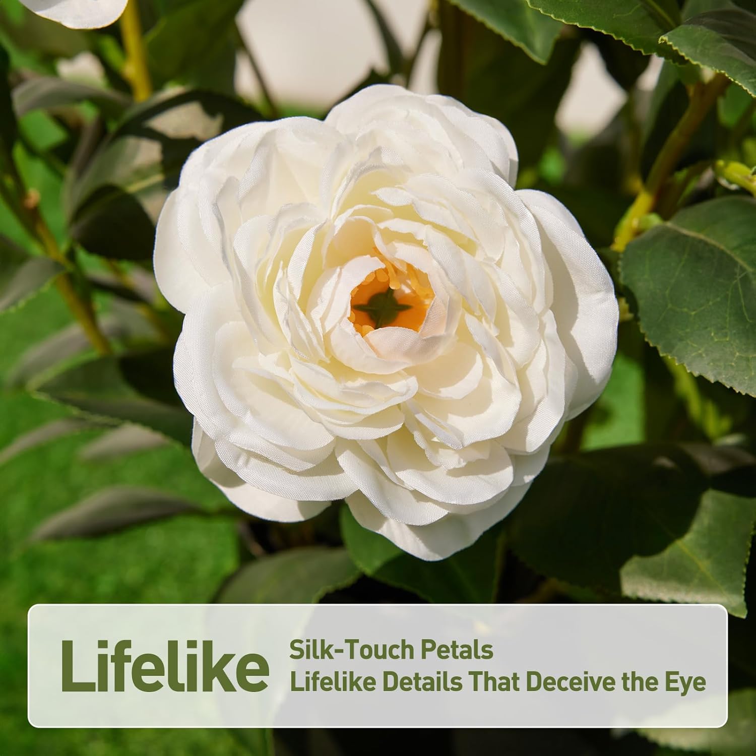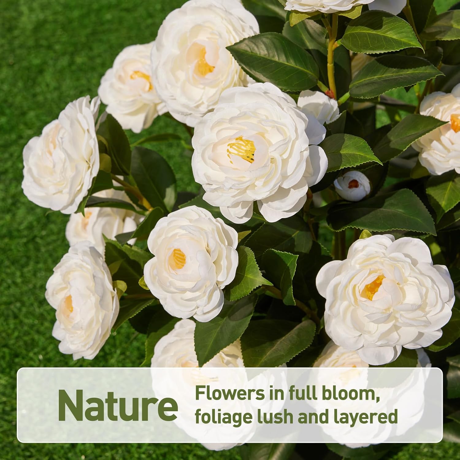 VeriNatural Artificial Camellia Tree,2Ft(24") UV Resistant Artificial Outdoor Flowers,Fake Tree with Silk Flowers for Outside,Small Potted Camellia Plant for Tabletop,Home,Front Porch Decor,Set of 2