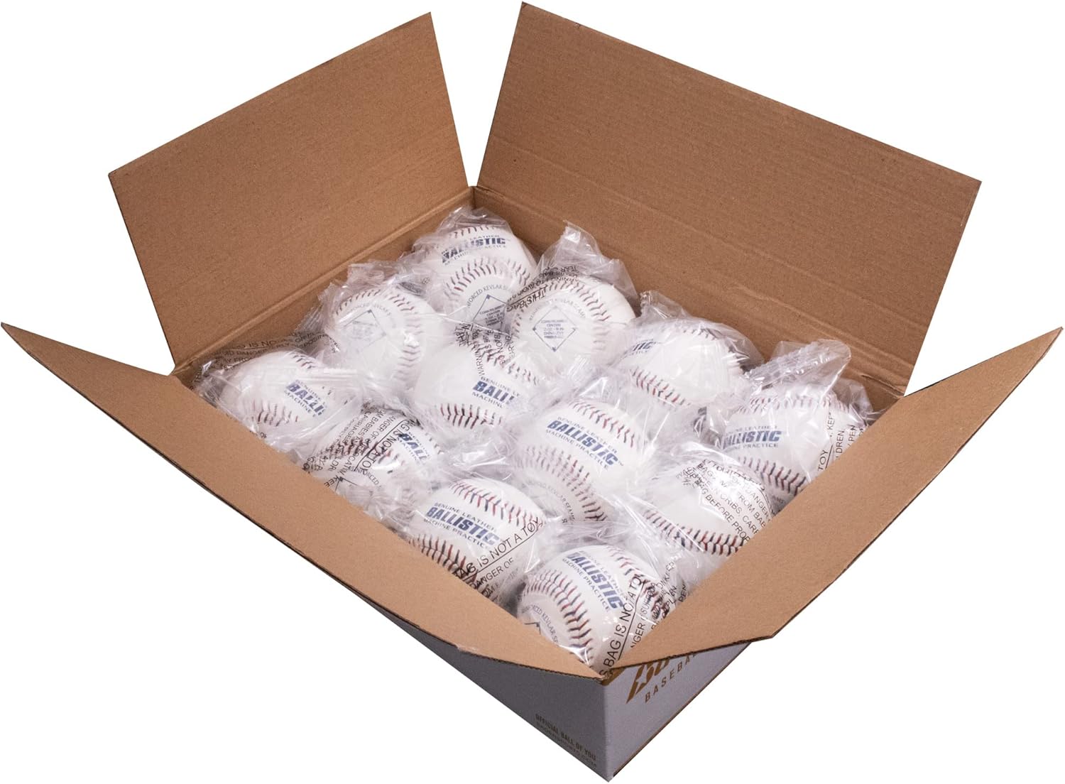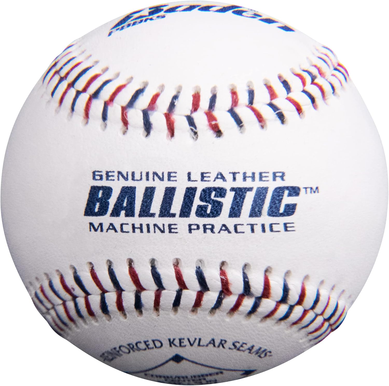 The Baden Ballistic Leather Pitching Machine Baseball - (One Dozen) helps players get the most out of their training. Designed for use in batting cages and with outdoor pitching machines, each baseball boasts leather and Kevlar seam construction for durability and a realistic feel in the hand and off the bat. This baseballs premium construction makes it hold it's shape and last longer than your traditional pitching machine baseball. If you're looking for a long lasting real deal pitching machine ball look no further than the Baden Ballistic.