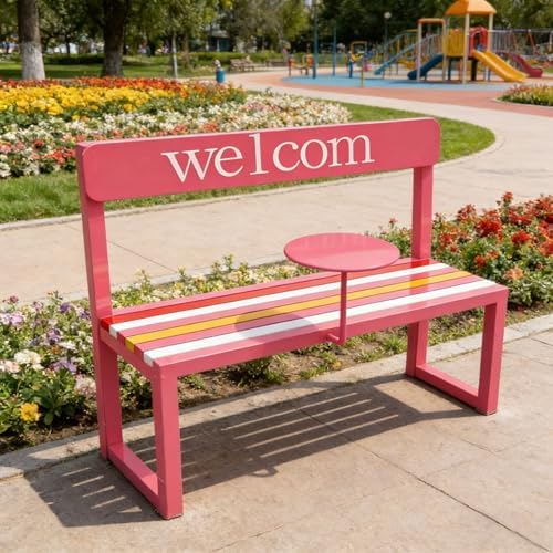 Upgrade your outdoor seating experience with our stylish and functional colorful iron bench, designed for durability and everyday use. Say goodbye to ordinary seating and welcome this eye-catching piece that not only enhances the aesthetic of your space but also serves practical purposes. The integrated small table is perfect for placing drinks or snacks, making it an ideal choice for cafes, parks, malls, and gyms. This iron rainbow bench combines a minimalist modern design with vibrant colors, making it a standout feature in any environment. Its sturdy iron construction ensures it can withstand daily wear and tear while providing a comfortable seating option. Measuring 120x35x80cm (47.24x13.78x31.50in), this bench offers ample space for relaxation or social gatherings. Whether you’re enjoying a sunny day in the park, waiting at a bus stop, or creating a welcoming atmosphere in a plaza, this versatile bench is perfect for various settings, including residential courtyards, scenic spots, and busy streets. It's easy to maintain—just wipe clean with a damp cloth—and no assembly is required, allowing you to enjoy your new seating right away. Please note that expansion screws are not included; we recommend preparing the appropriate hardware for your specific mounting needs. Due to manual measurement, a slight variation of 1-2cm may occur. Additionally, color differences may be present due to lighting and display settings, so please refer to the actual product for accuracy. Transform your outdoor area with our colorful iron bench, where style meets convenience, making it an excellent addition to any space.