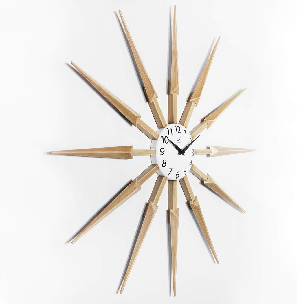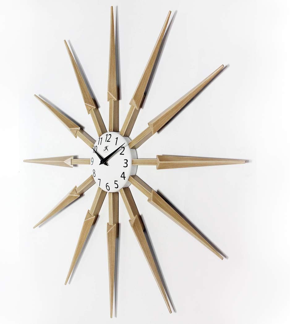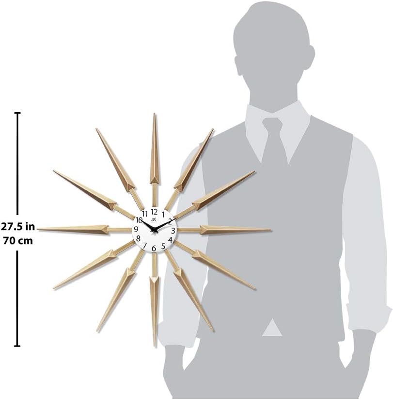 Add a touch of trendy sophistication to your ensemble with our luxurious Celeste wall clock. Featuring a striking starburst silhouette and three different color options for easy-to-assemble spokes, the Celeste is sure to complement any mid century design. Black metal minute and hour hands sweep across an off-white dial face while the black bold numerals make this clock easy to tell time. The mid century modern styled clock invokes an undiluted splash of energy and emotions to ensure it makes a clear and great impact wherever you choose to hang it. Creatively designed, this classic time piece is just waiting to add flavor to any home or office space. Bursting with 12 artful rays radiating from the center core, this modern clock is made with sturdy and durable plastics to ensure long-lasting use. The simple, yet elegant design of this clock is powered by a high quality Quartz movement that requires only one AA battery (not included) to operate wirelessly The 24.5-inch unique mid century modern sunburst wall clock requires a quick assemble (under 5 minutes) on arrival after which it will be ready to be hanged for your enjoyment.