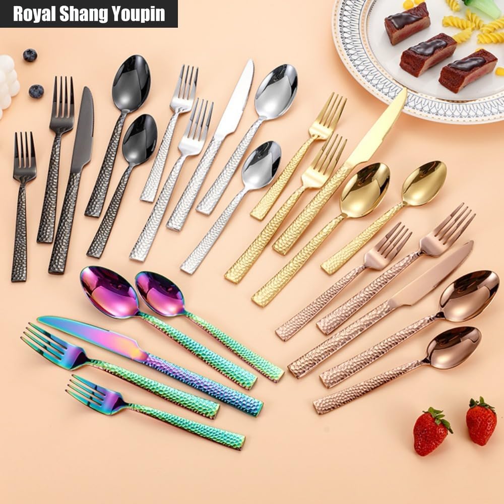 ๐ฆ Packaging quantity: 5 pieces=(1 knife, 1 fork, 1 spoon, 1 teaspoon, 1 dessert fork). 20 pieces=(4 knives, 4 forks, 4 spoons, 4 teaspoons, 4 dessert forks). ๐Shopping tips 1.Due to manual measurement, the size may have 1-2mm error. 2.Due to the different light of the monitor and camera, there may be a slight color difference. 3.After receiving the package, please check whether it is opened, whether the product is correct or not, if you find out the problem of out-of-stock, wrong goods, defects, etc., please contact us by [email], we will solve the problem for you within 24 hours.