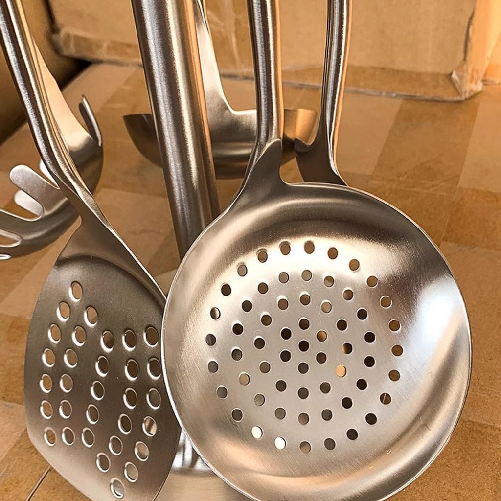 Bright as a , more beautiful, easy to clean, and less prone to scaling.Polished and polished, as smooth as a .Stir fry is convenient and can be flipped with a gentle push.Thickened stainless steel forged material, thick, sturdy, and .Quickly cook, filter, and drain to make food cleaner and more convenient to consume.Name: Kitchenware SetMaterial: stainless steelColor: As shown in the pictureNumber of pieces: 6Specification: Kitchenware set * 11. Due to screen display differences, there may be slight color differences in the visual. Please refer to the product received.2. Manual measurement may have slight errors, please understand.