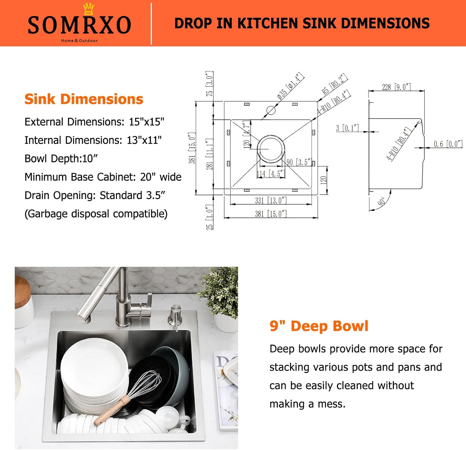 | Item Dimensions D x W x H | 15"D x 15"W x 9"H |