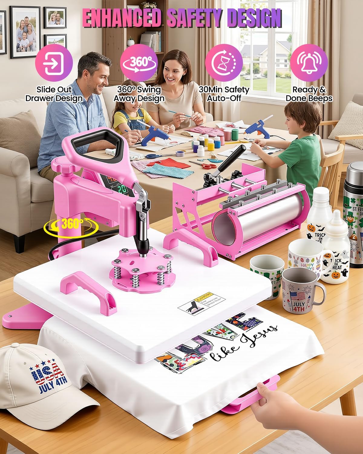 | Recommended Uses For Product | This versatile heat press combo is the perfect tool for launching or growing a small custom apparel and merchandise business, enabling you to create and sell personalized t-shirts, hats, mugs, and plates. It is equally ideal for creative family projects, allowing you to craft unique gifts, holiday decor, and lasting keepsakes at home. Furthermore, it serves groups and communities perfectly for producing team uniforms, event merchandise, and fundraiser items for clubs, sports teams, or special occasions, making it a truly all-in-one solution for turning ideas into personalized products. |