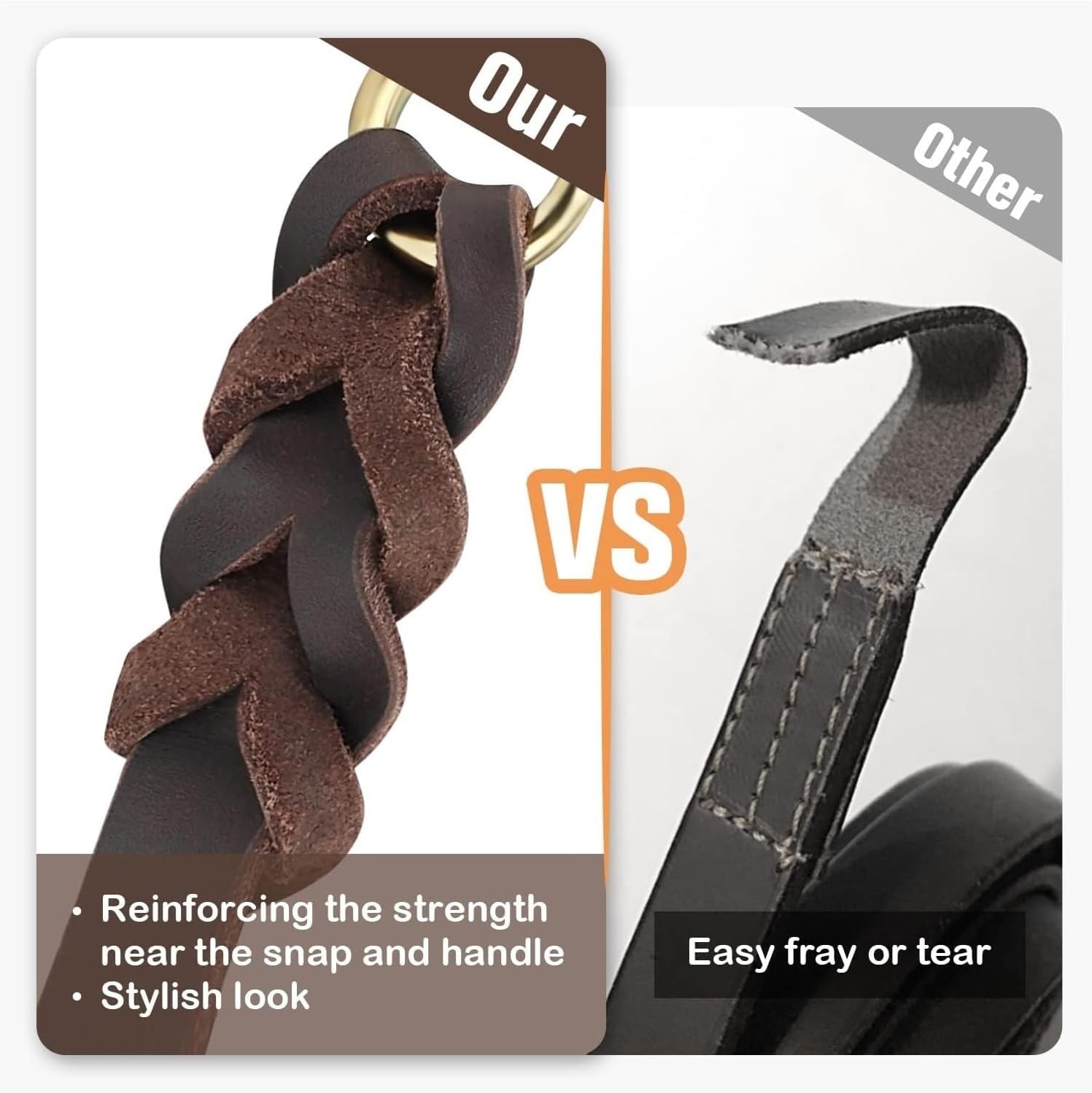 • It is a 2.1-2.6M heavy duty braided leather dog leash, fitting for small, medium, large dogs and shepherds for both training and walking.