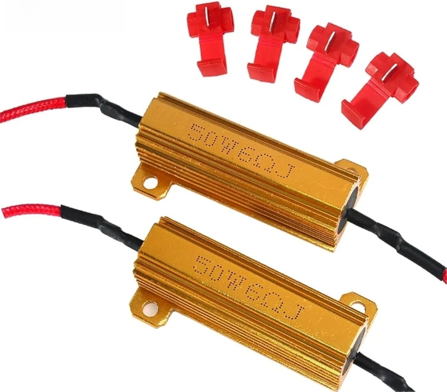 Resistor UnitsLED car tail light aluminum shell resistance:Extremely high accuracy and high voltage resistance.Waterproof and excellent heat dissipation. Generally used in LED car taillights, frequency converters, car braking equipment, and industrial control equipment on large power supplies. The LED car aluminum housing resistor is used to adjust the flashing speed of LED lights Description:1.After changing the installation of LED lights, the car's trip computer will show that there is a problem with the newly installed LED lights, etc. 2.In order to solve this problem, the installation of this product can solve the phenomenon of false alarms due to the installation of LED lights in the driving computer car. 3.When using a resistor to solve the stroboscopic, all the turn signals (the small side lights do not need to install a resistor) change the LED turn lights, you must install a resistor. 4.It is recommended to use 25W for small lamps with low current demand such as turn signals, reversing lights, rear fog lights, indicator lights, daytime running lights 5.It is recommended to use 50W for brake lights, front fog lights (change to surround), and other light bulbs with large current requirementsInstallation is easy! Put the wire into the button hole of the wire clip, press the button, and then fix the resistor body and it's OK. It's that simple! Can solve the problem of false alarms, false alarms, and stroboscopic (connect resistors in parallel to the positive and negative poles of the alarm stroboscopic bulb)==========Accuracy : 5% Volume : 0402Color : WHIT E,Yellow,Red Rated Power : 25WResistance Tolerance : 5 Package Type : Surface MountTechnology : Metal alloy Type : Wirewound Resistorkeyword 1 : 50w 6 ohmkeyword 2 : Replacement resistors for car airbag repairkeyword 3 : Aluminum Power Metal Shell Case Wirewound Resistorkeyword 4 : Car Load Resistorkeyword 5 : LED Decoderkeyword 6 : 25W LED Reverse Brake Turn Signal Light Load Resistorkeyword 7 : 6 ohm resistorkeyword8 : 50w resistorkeyword 9 : load resistorkeyword10 : resistor for turn signalskeyword11 : resistor for led lampskeyword 12 : led resistor