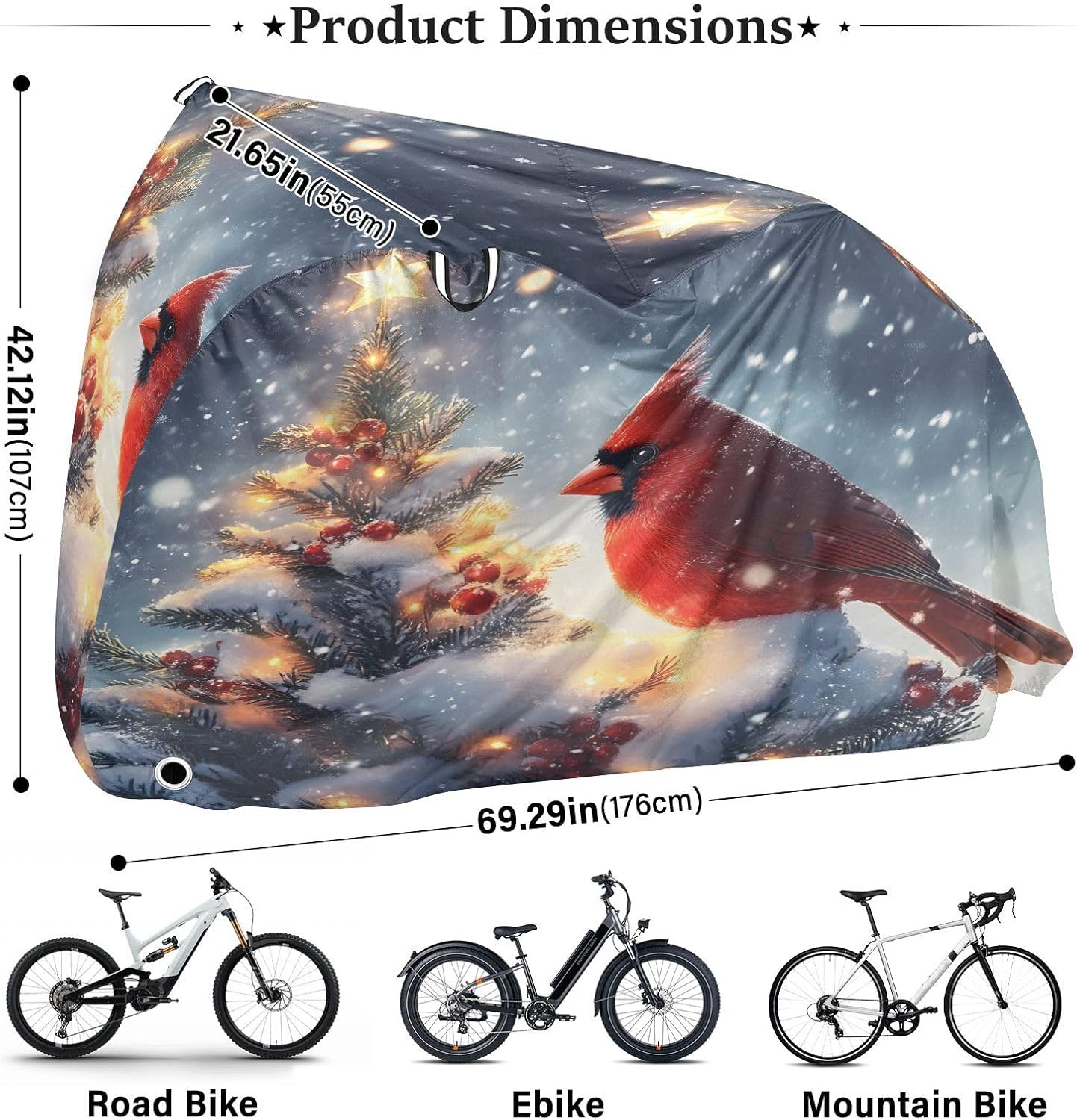 Protect your bicycle in style with our premium bike tarp, engineered for maximum defense against harsh elements. Unlike basic covers, we use specially engineered umbrella waterproof fabric - the same advanced material used in high-end rain umbrellas - delivering superior performance with unique visual appeal. Sun & Heat Defense Our fabric creates a physical cooling barrier that actively lowers your bike's temperature by: Blocking 95%+ harmful UV rays to prevent paint fading Providing exceptional shading & heat insulation (up to 20℉/11℃ reduction vs direct sun) Offering SPF 50+ equivalent protection for sensitive components Rain & Dust Protection Water-repellent coating causes rain to bead and roll off Tightly woven fabric acts as dustproof barrier for long-term storage Prevents moisture buildup with breathable side panels (prevents condensation) User-Focused Design LOCK ACCESS HOLE at front wheel enables secure locking without removing cover ADJUSTABLE BUCKLE STRAP at rear wheel anchors cover during strong winds Reflective safety strips on handles enhance nighttime visibility Ultra-lightweight (23 oz) folds into included pouch Unbeatable Aesthetics Choose from over 1,000 designer patterns - from sleek geometrics to vibrant nature motifs - transforming your bike into a street-style statement while competitors offer only solid colors.