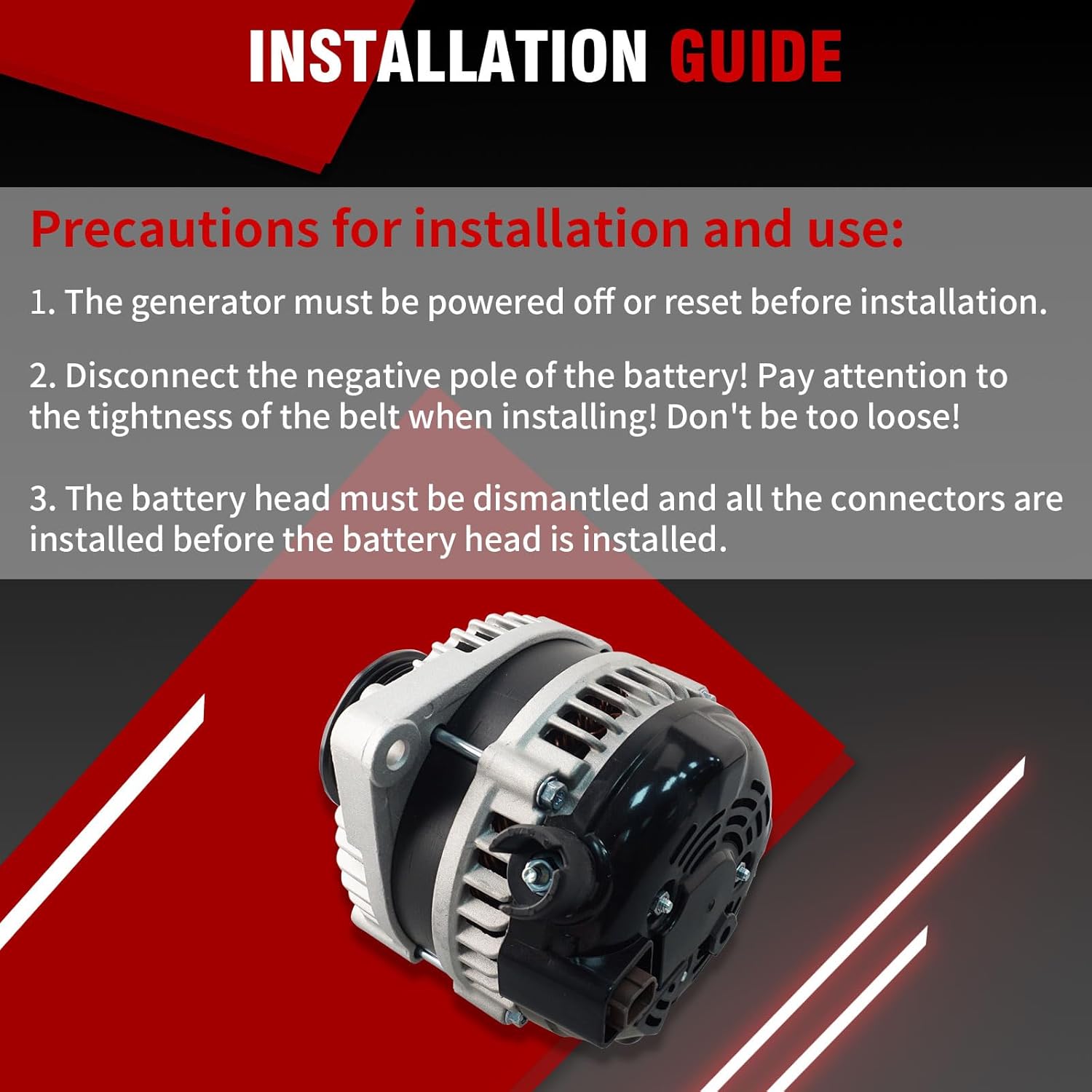 Package Including: 1 x Alternator Specifications: Amperage:130A Voltage:12V Rotation:CW (Clockwise) Number of Grooves:6-Groove Clutch Pulley Why Choose DrCax Alternator? 100% Factory Tested Great Value for Money Eco-Friendly and Sustainable Exceptional Customer Service Ready to use, Direct Replacement Built to Strict Quality Control Standards Use Highest Grade Material with OE+ Durability OEM Equivalent Part Numbers: 11391N, 11391, 31100RGWA01, 06311RGW505, 06311RGW505RM, 31100RGWA01RM, 104210-5920, CSF92 Compatability Compatible with Honda: 2008-2010 Odyssey 3.5L 2009-2011 Pilot 3.5L 2009-2011 Ridgeline 3.5L Compatible with Acura: 2009-2014 TL 3.5L 2009-2014 TL 3.7L 2009-2012 RL 3.7L 2010-2013 MDX 3.7L 2010-2014 TSX 3.5L 2010-2013 ZDX 3.7L About Us DrCax are automotive-related brand,supplying mainly high quality auto parts for all over the world.Experienced in OEM service and Tuning parts for years.Our products are manufactured to the same specifications as the original ones. DrCax is an ideal choice to replace your broken parts.