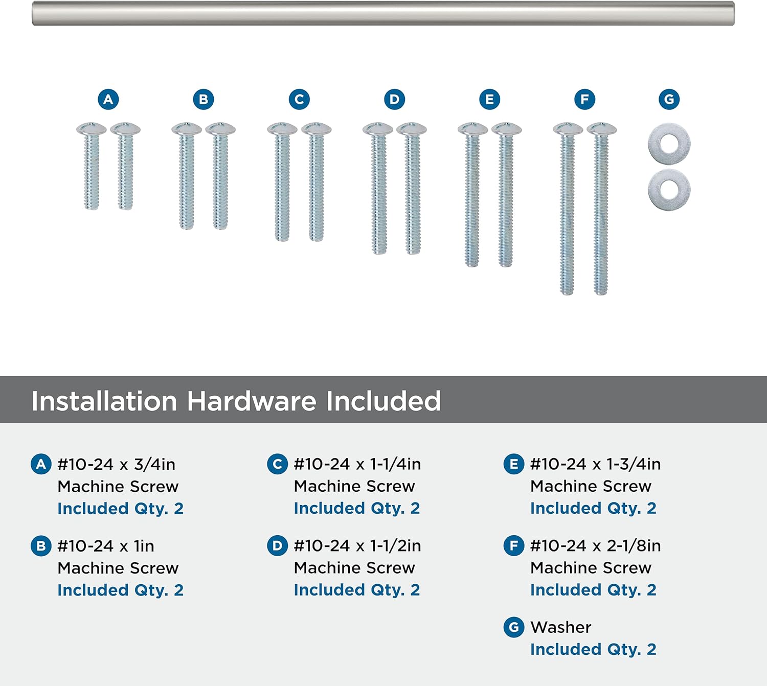 | Included Components | #10-24 x 3/4in, #10-24 x 1in, #10-24 x 1-1/4in, #10-24 x 1-1/2in, #10-24 x 1-3/4in & #10-24 x 2-1/8in Truss Head Machine Screws, Washers |