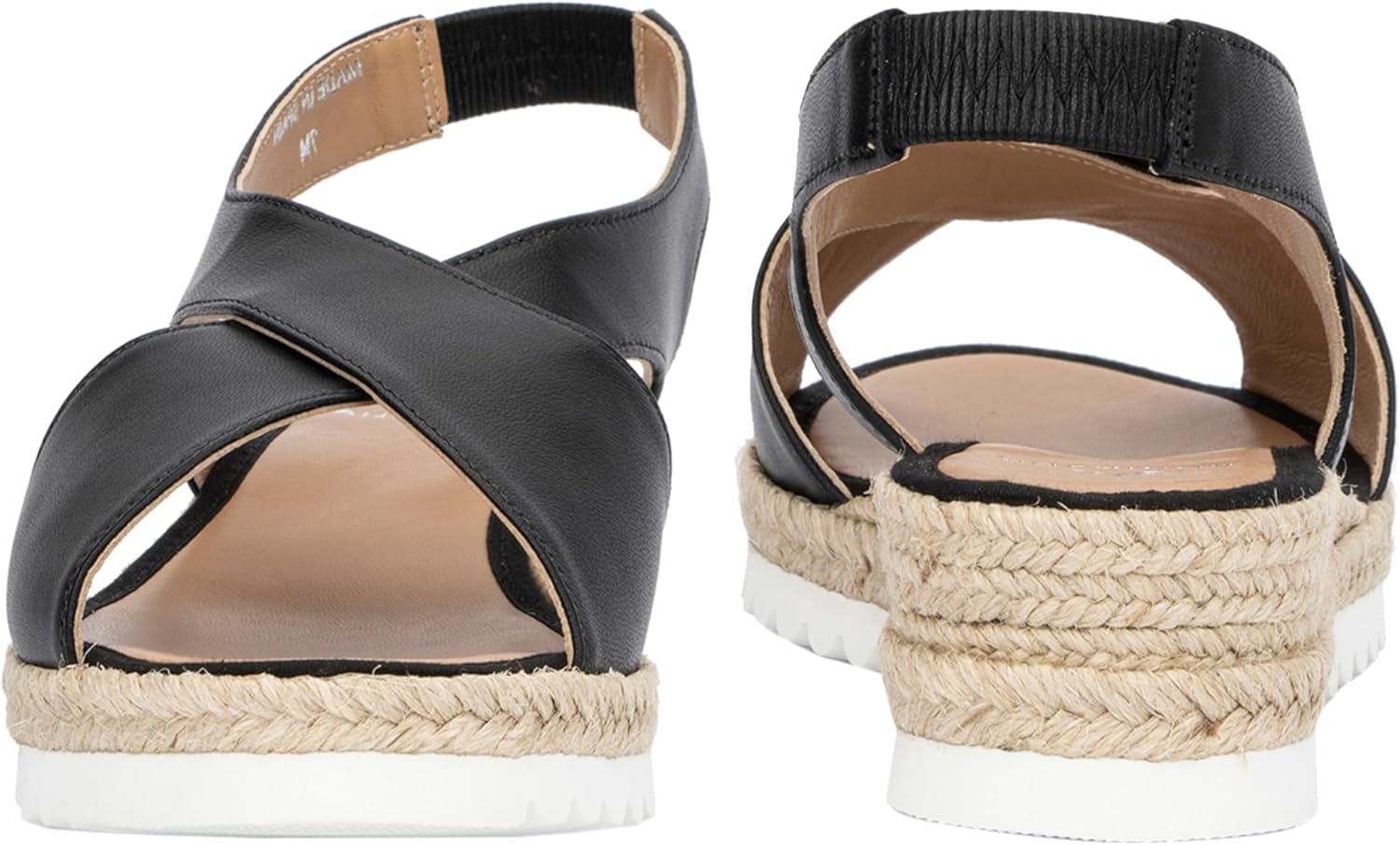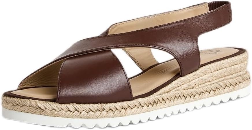 Nothing says warm weather like an espadrille, as shown in our Adelina Wedge Sandal. Crafted in weatherproof suede, nappa and metallic versions, it features crisscross straps and a round-toe silhouette. A range of neutral hues allows for seamless mixing and matching within your closet. Whole sizes only; for 1/2 sizes, order next size up.