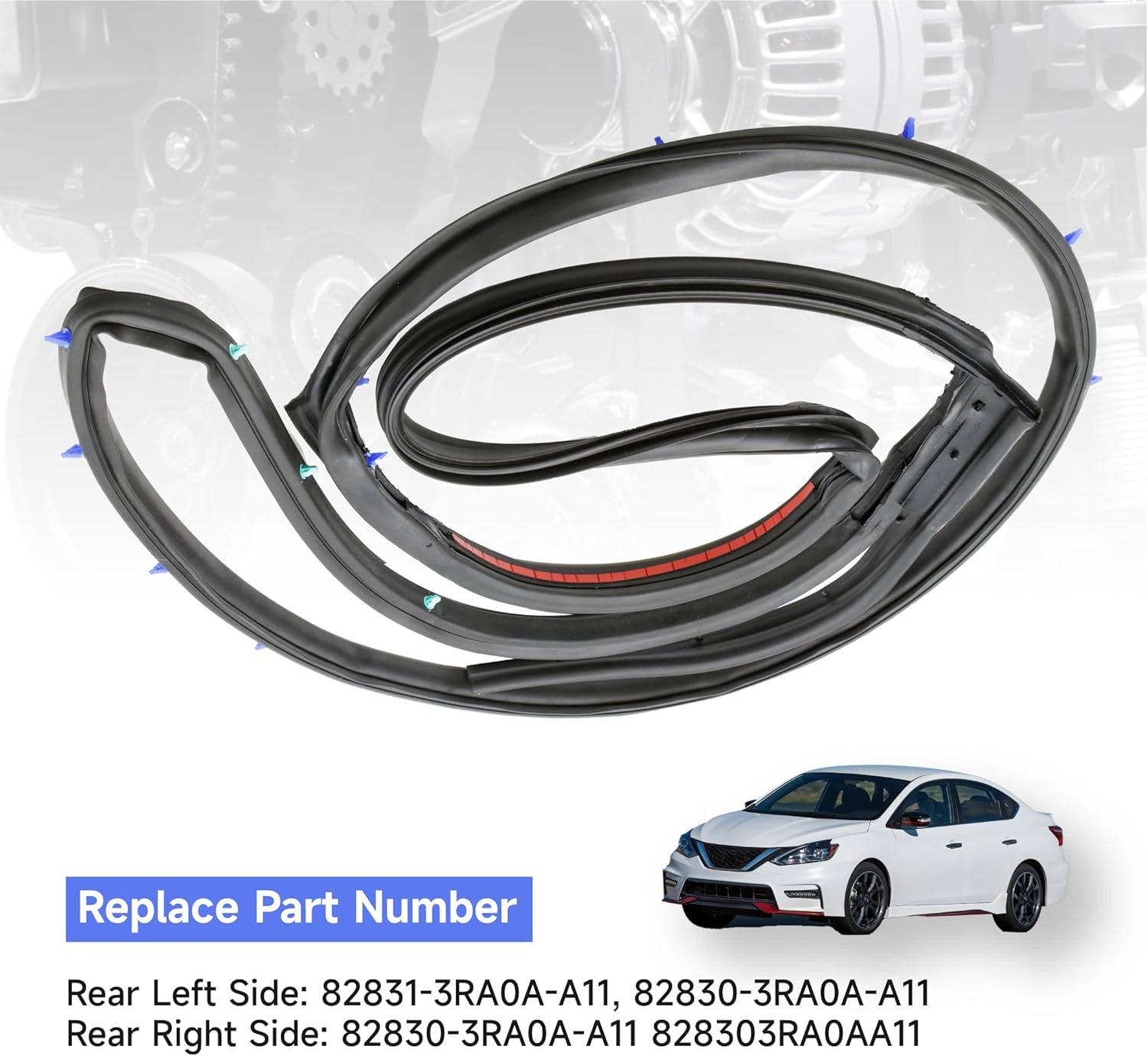 Material:RubberCompatible Model:for Nissan Sentra 2013 2014 2015 2016 2017 2018 2019Replace Part Number:Rear Left Side: 82831-3RA0A-A11, 828313RA0AA11Rear Right Side: 82830-3RA0A-A11 828303RA0AA11Product Features:1. Enhanced Safety and Convenience2. Perfect Compatibility3. Durable and Reliable4. Easy to installBefore You Buy:Please contact us to confirm the compatibility of this product with your vehicle to ensure a proper fit