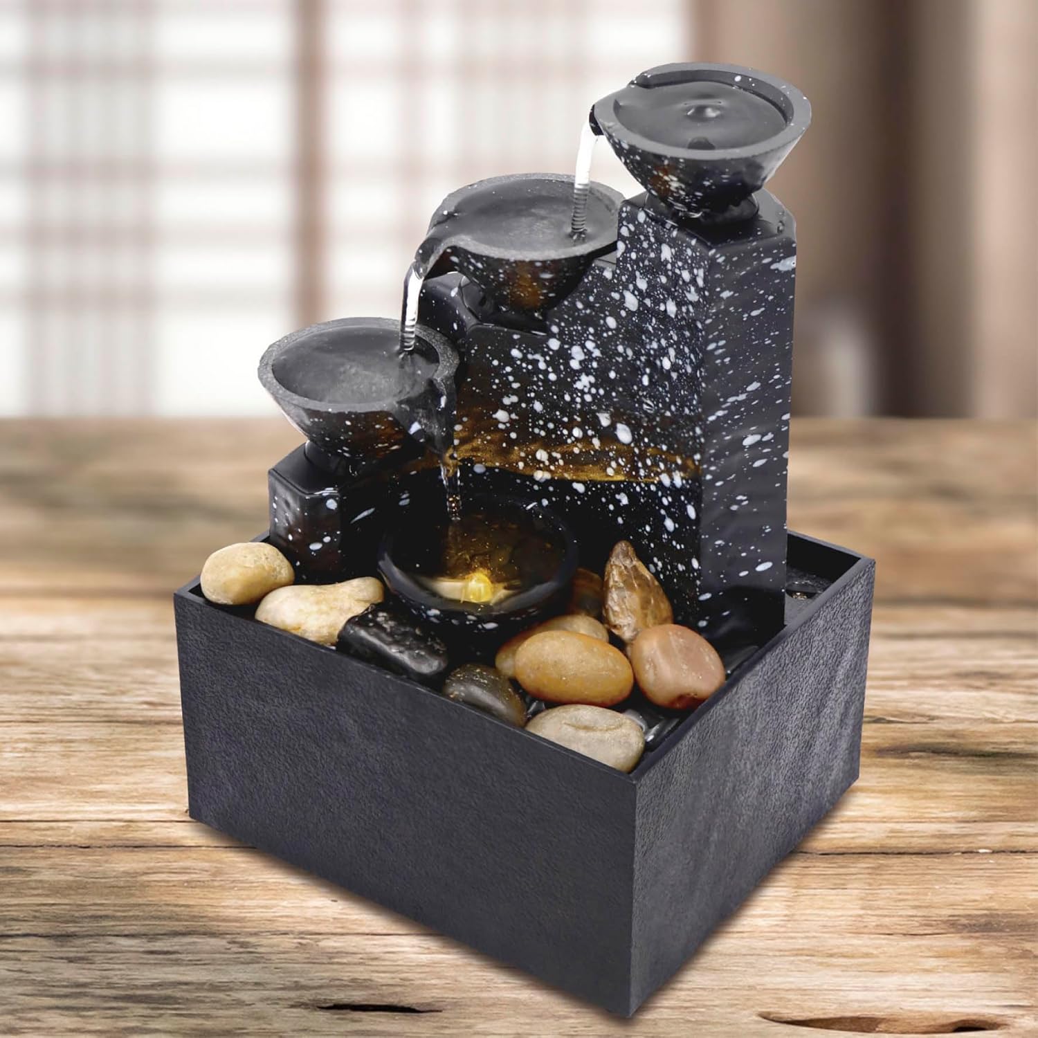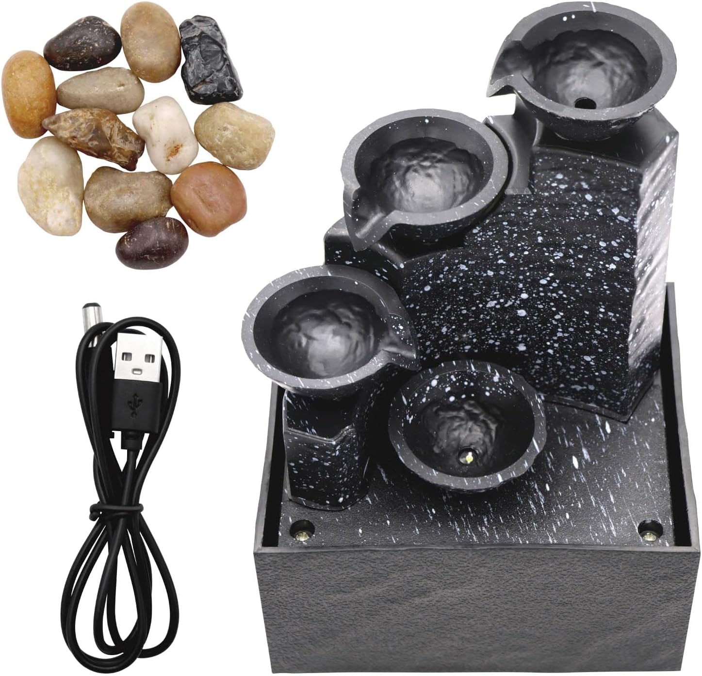 Relax in a gentle setting. Circulating electric tabletop fountain The LED light up the expressive water flow. The LED light up the expressive water flow.