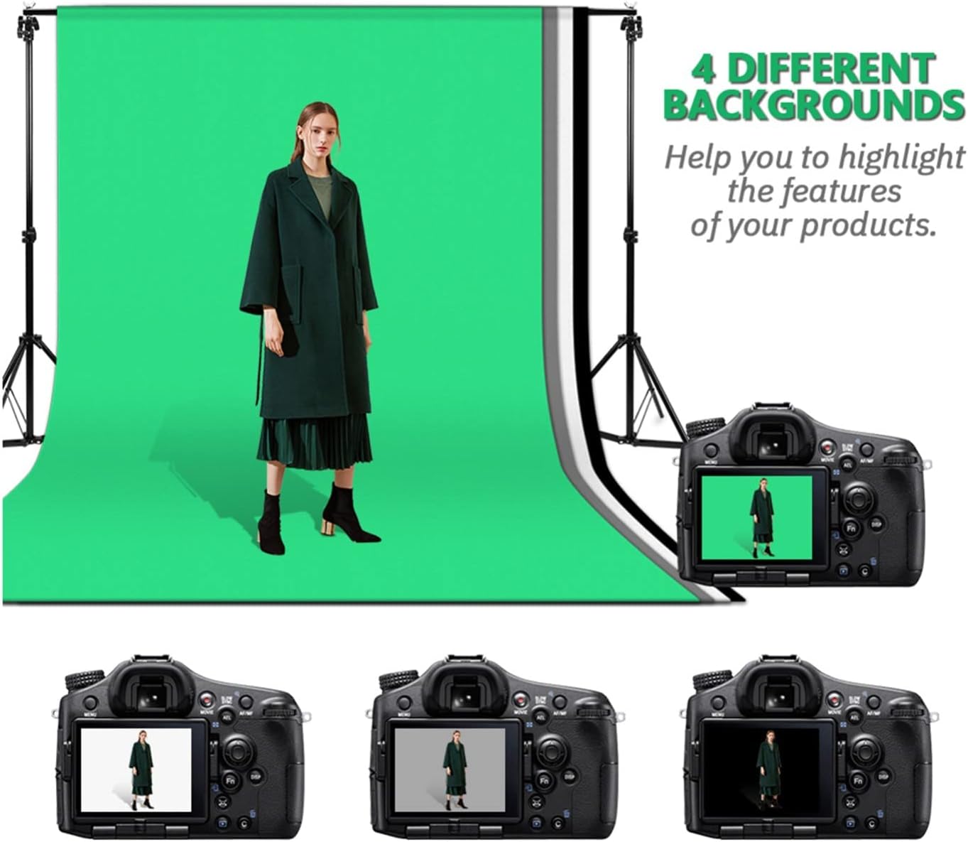 Specifications: Two adjustable stand+four crossbarsEasy to set up & disassembleMaterial: Aluminum alloyOperation height of stand: 0.68m 2mWidth of crossbar:1.4m 3m(4 x 0.75m Crossbar)Folded length of stand: 0.6mBackdropSize:1.6M x 3MMaterial: Non-woven fabricsColor: White&Black&Green&GrayLight standColumn Diameter:25mm/22mm/19mmMaximum operation height:2000mmMinimum operation height:680mmLoad capacity: 3.5kgLamp holderE27 socket cable with AU plugSwitch : on/off controlumbrellaMaterial: nylon material, Aluminum alloyshaftSize:Diameter: 84cmColor: translucent white ,black&silverLamp135W energy saving daylight photography bulb (5500K)Comes with E27 socket, suitable for any light holder with E27 socketDemension:26cmDiameter:8cmNote:Please twist the plastic part to set up5in1 60cm reflectorThis is a 5 in 1 multi photo reflector disc 60cmShape: RoundSize open: 60cmSurfaces: Gold, Silver, White, Black and TranslucentZipped round carrying bag Dia. : about 24cm Package1 X 2*3M Backdrop support1 x 1.6*3M White backdrop1 x 1.6*3M Black backdrop1 x 1.6*3M Green backdrop1 x 1.6*3M Gray backdrop2 x 2m Light stand2 x Lamp holder2 x White umbrella2 x Black&Silver umbrella2 x 135w Lamp3 x Clips1 x 5in1 60cm reflector1 x Background carrying bag