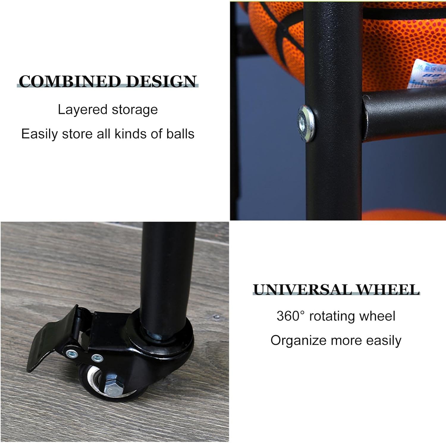 Basketball Storage Rack Sports Ball Holder, Sports Equipment Organizer for Volleyball Football Basketball Exercise tool storage organizer is an ideal exercise organizer for game rooms, garages, basements, game groups, gyms and schools; Create a simple and stylish way to organize your sports balls, get rid of the clutter on the ground, and have a cleaner space. PRODUCT DETAILS Product name: Large-capacity sports ball storage unit Material: Powder coated steel Size: 130CM×41CM×120CM Assembly: required Included: 1 ball storage cage FEATURES: -Rolling casters, can be easily moved anywhere; -Thickened steel material, durable powder coating, anti-rust and durable; -Save space, reduce floor clutter, and make your house look cleaner; -Decorative ball storage display stand for home and office, store; -Stylish and simple design, functional and practical ball storage solution. PURCHASE INSTRUCTIONS It takes about 7 to 21 working days for the package to be delivered. If you have any questions, please contact us by email.
