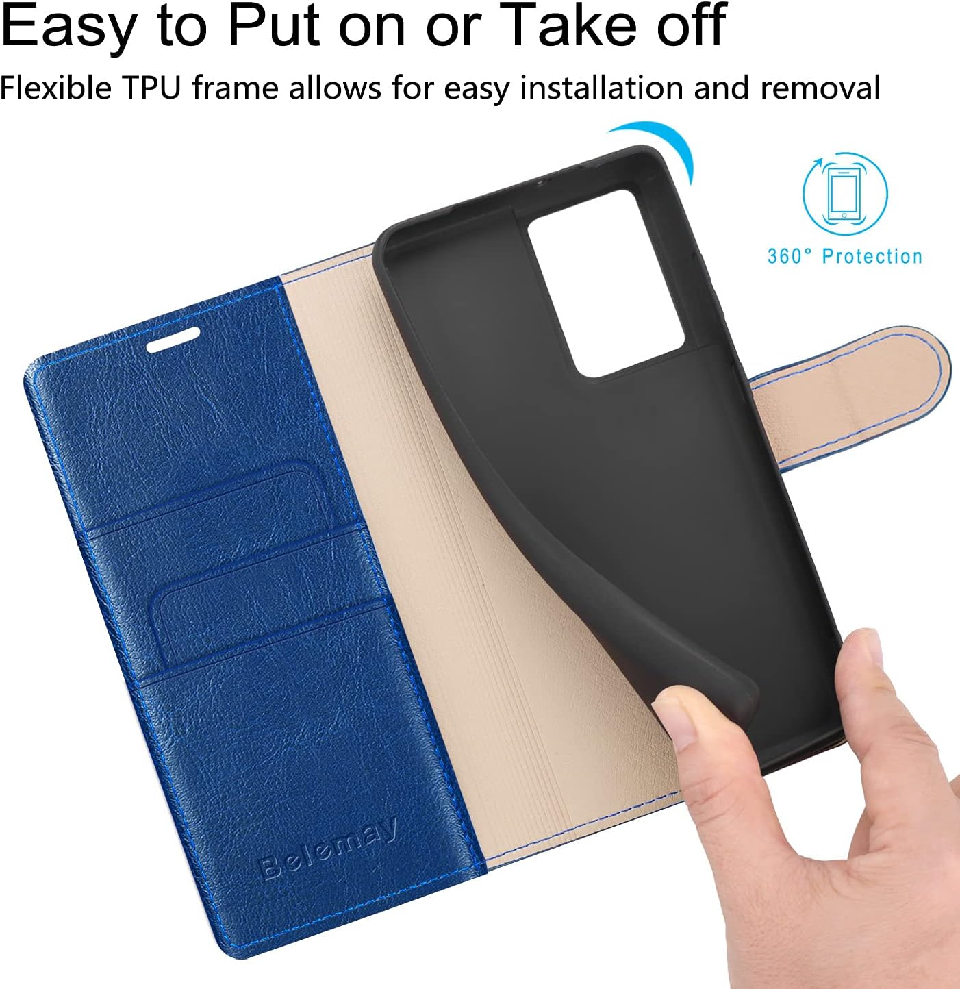 Belemay Classic Wallet Case Made of Genuine Cowhide Leather. Belemay retro book style wallet case fully wrapped in durable cowhide leather with shock absorbing (TPU) inner cradle to provide edge-to-edge protection and opens to reveal 3 card holder slots and 1 cash pocket for needed cards and cash. Blending handcrafted style with premium protection keeps you organized, stylish and protected. Compatible with Samsung Galaxy S22 Ultra 5G 6.8-inch How to Find Your Phone Model? 1, Open the Setting app. Tap About Phone. You will see the Model Name. 2. Enter *#1234# on the phone keyboard. What’s in the BOX: 1 X Belemay Case Samsung Galaxy S22 Ultra 5G 6.8-inch Durable Cowhide Leather Worry about whether this leather will be easily scratched or dirty? Belemay carefully selected durable cowhide leather, which is wear-resistant, drop-resistant, anti-scratch and not easy to deform. Protects your phone from daily wear and tear, keeps your phone always looking and performing like new. Adopts advanced oil wax process put an end to water-stains and smudges appearance. Upgraded Convenient and Durable Card Slots The third-generation card slots which are more convenient and durable. We have newly designed the card slots to make the insertion and removal of cards easier and more convenient. Using more exquisite leather case production technology, making the card slots more durable. With Advanced RFID blocking lining to keep your cards information safe. Advanced Craftsmanship Exquisite stiching RFID protected Undetachable soft TPU shell BELEMAY provides LIFETIME REPLACEMENTS WARRANTY, we take care of all quality-related issues with a replacement. If you need any help, please reach us directly go through Amazon messenger.