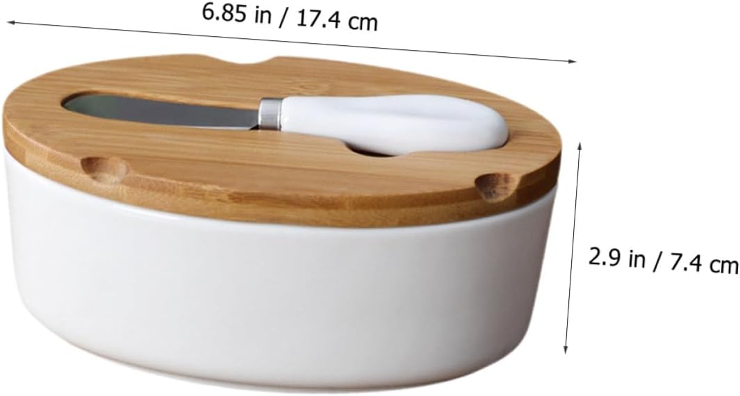 Package List 1 x Cutter 1 1 x Lid Characteristics -Material:Ceramic, -Color:Multi -Size:17.40X12.00X7.40cm/6.84X4.72X2.91in -Product Info:Butter knife ceramic disc set - This ceramic butter keeper perfectly matches most kinds of butter, to satisfy your daily use with lid. - You will find your kitchen countertop neat and orderly after using it, improving your life greatly ceramic butter storage dish. - Utility butter dish with lid to keep your butter fresh, provides a natural style for your kitchen butter tray with lid. - With the lid design, Butter Dish and Lid can keep your cheese or butter clean and safe boxes with lids. - With this reusable butter dish you can store the butter to not be tainted by other odor butter storage container.Goods Descriptionairtight butter dish Fine workmanship, it the practicality.ceramic butter keeper This Butter Storage Case is made of premium ceramic material, which can withstand the use.sealed butter dish Features the good material, which has high durability, not easy to deform