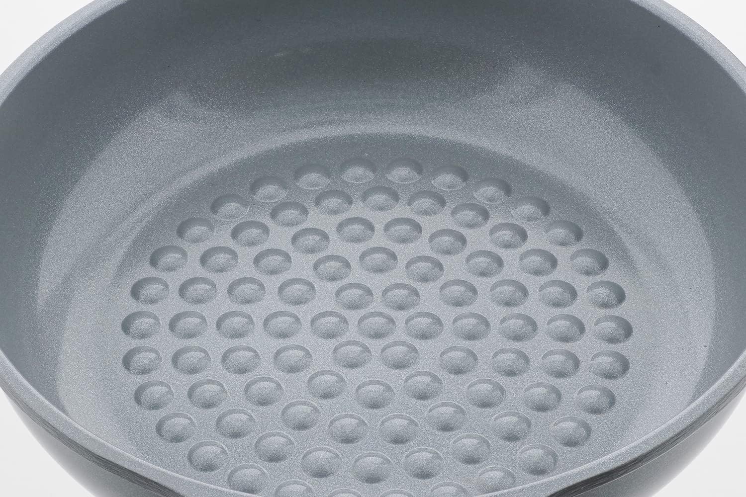 Non-stick embossed + ceramic coating for heat transfer Induction Frying Pan Series The embossed interior allows you to cut off excess oil and make it very healthy. Far-infrared effect makes ingredients bake evenly and fluffy. Made of die-cast aluminum that is resistant to heat deformation and heat evenly throughout the entire surface. Energy saving next to heat transfer Cook in a small amount of oil and won't stick to any surface.