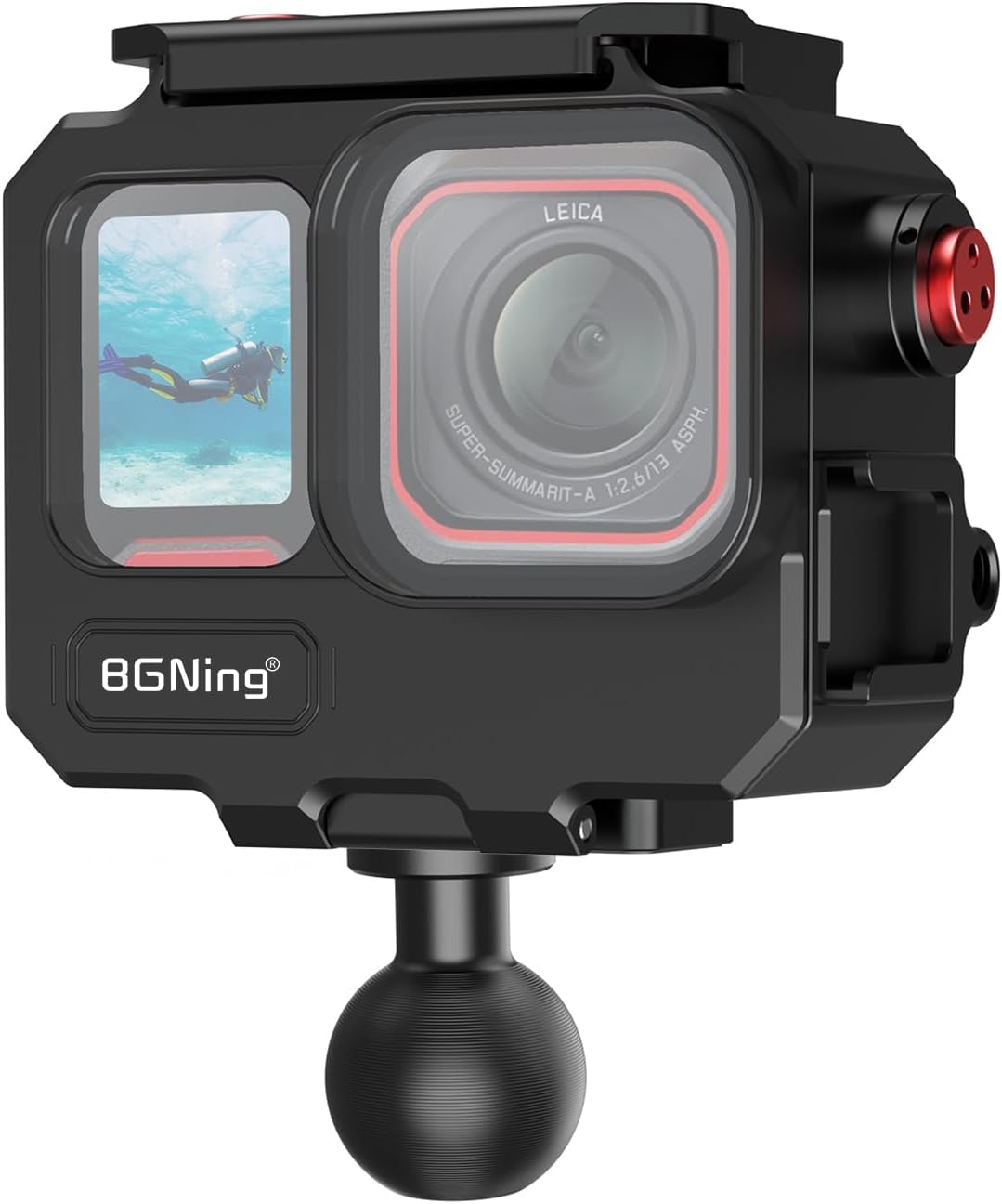 BGNing Multi-Expansion Waterproof Housing, Compatible with Insta360Ace pro/Ace Pro2 Cameras, 262 ft/80 m Underwater Protective Dive Housing with 1/4 ARRI-Standard Positioning Hole Made of sturdy and corrosion-resistant aluminum alloy, it can withstand uncertain outdoor environments. High transmittance tempered glass, clear image, can withstand 80M deep water pressure. With 1/4 ARRI-standard positioning hole, M3 screw holes, cold shoe mounting base, front and side of the quick release magnetic base, compatible with a variety of use scenarios. type 2, add the hidden two card magnetic base, can be quick release. type 3, add quick release base with two cards for quick release. type 4, add two cards, can connect three cards. type 5, add one inch ball head, can be used with ball head accessories.