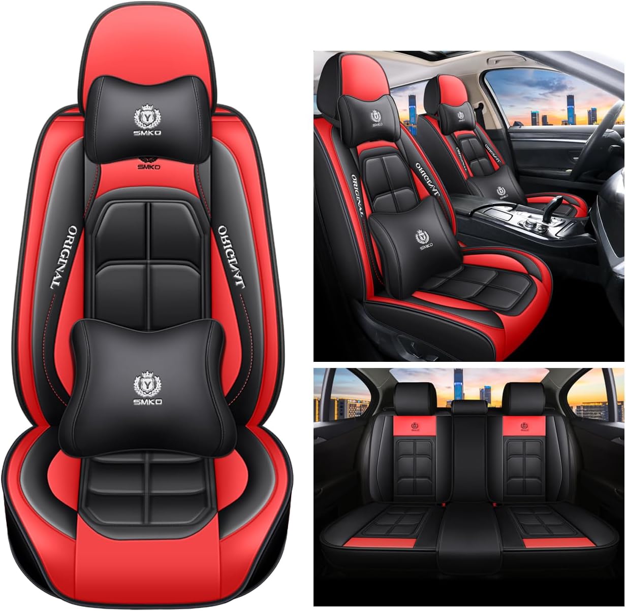Description: This is universal car seat cover,according to our selling experience,it is fit for more than 99% of 5 seats car. The 3 rear seats cover is detachable(joining with zip fastener),so you can recline the rear seat as normal,please do not worry. We are professional supplier of car accessories,We have various styles of seat covers,please visit our store to find more. If you have any other question about product,just feel free to contact us. NOTICE:DOES NOT FIT A PICK-UP TRUCK,SPROTS CAR with 2 SEATS or 4 SEATS,PLEASE NOTE IT. We provide installation instruction,will send you via amazon email,please contact us after receive the product. We accept return and will refund if it does not fit your car,so feel free to order it. You will receive the package with installation instruction in paper,if you need installation instruction of PDF or video,please contact us via amazon message. Material: Breathable PU leather Color:Black-red,Black Gray, Black . specific size: Front row: length: 52 cm/20.4inch,width: 48 cm/18.8inch backrest,height: 60 cm/23.6inch Head height: 20 cm/7.8inch ,Cap width: 27 cm/10.6inch Rear row: Length: 133 cm/52.3inch,Width: 45 cm/17.7inch,Backrest height: 60 cm/23.6inch Head height: 20 cm/7.8inch,Cap width: 27 cm/10.6inch Packing size: 55 cm/21.6inch * 65cm/25.5inch * 25cm/9.8inch Suitable for: 5 seats car, all season Package: 2pcs Front backrest 2pcs Rear row sitting 2pcs Rear backrest 2Headrest 2Lumbar Support Rear armrest