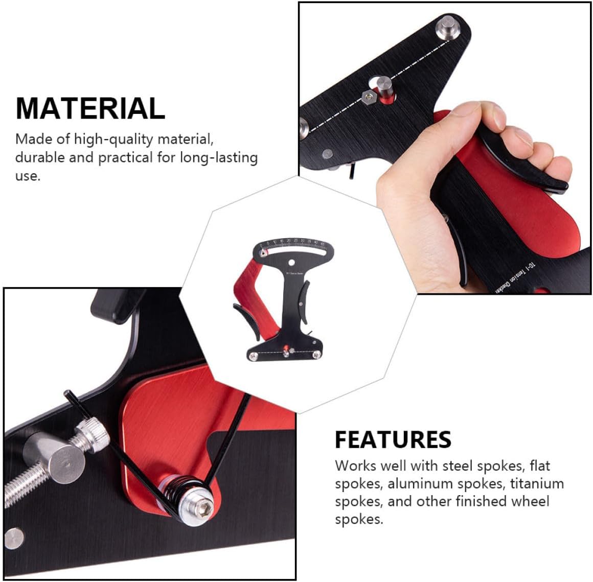 Package List 1 x spoke tension meter Features -Size:19.60X14.50X4.00cm/7.70X5.70X1.57in spoke tension gauge -Product Info:Spoke correction tool -Material:Aluminium Alloy bicycle spoke tension meter tool -Color:Black bikes spoke tension meter -Adoption of , sturdy and strong for long-term use bikes wheel spoke tension. -It can be used and judged easily and quickly, convenient and practical spoke tension tool. -You can refer to the spoke tension comparison table. The comparison table is in accordance with the value measured by the test instrument strictly bike spoke tension. -Bicycles spokes can be measured regardless of diameter, material and shape bike spoke tension meter. -In order to determine the tensile value, it covers steel round spokes, flat spokes, aluminum round spokes and more bike wheel spokes.Goods Informationbike wheel spoke tool Portable for easy carrying.spoke tension tool Light weight and high performance.spoke tool It can adjust the tension of the steel wire to correct the deformation of the wheel.bikes spoke tension meter This product is a bike spoke tension meter, adoption of premium and durable material