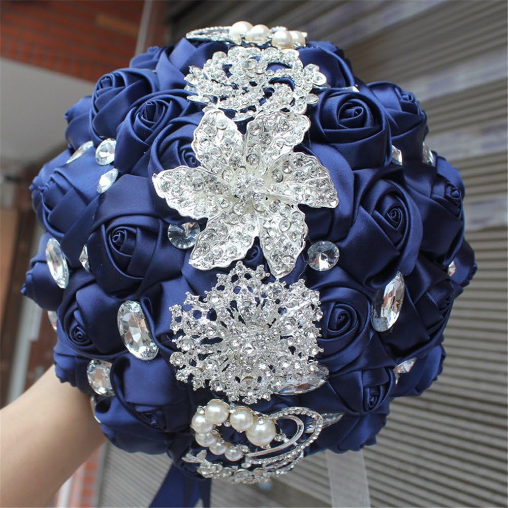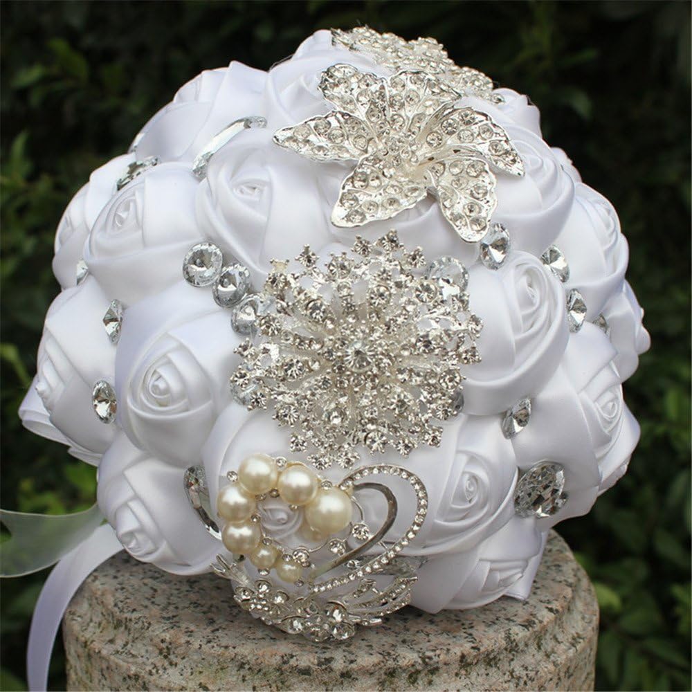 Description - Package included:1 x Wedding Bride Bouquet -Material - Rhinestone brooch, crystal, satin ribbon