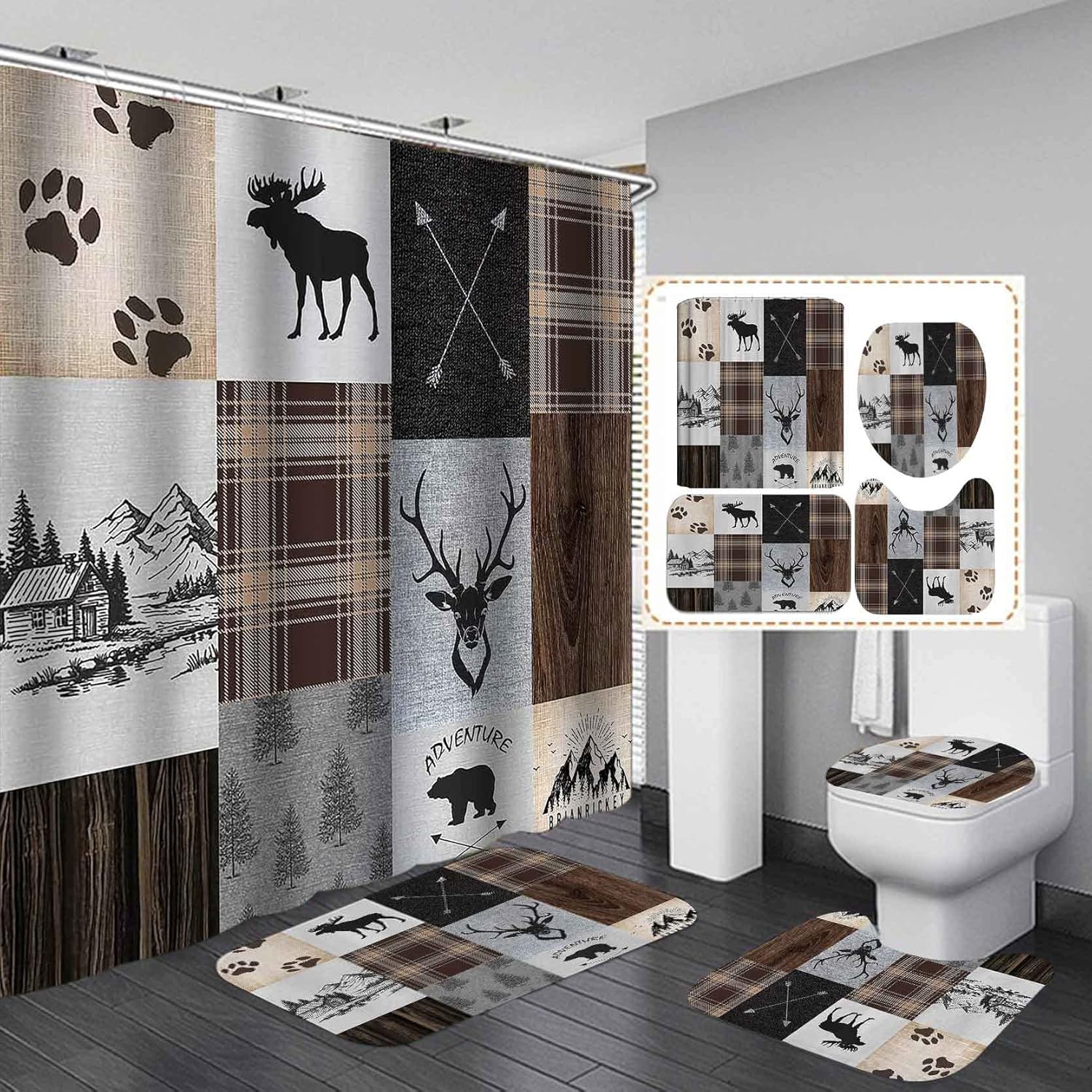 ☀ABOUT "Camille & Andrew"☺Our excellent designers Camille & Andrew have studied fashion and design in France.☺Our design philosophy is to bring you the pure enjoyment of beauty and comfort. Enjoy life, enjoy using Camille & Andrew's products.☺We have a factory with 20 years of professional experience. We have skilled craftsmen and advanced high-definition printing technology. ☀PACKAGE INCLUDED ☺1 Piece Shower Curtain with 12 Pieces Shower Curtain Hooks ☺1 Piece Floor Mat ☺1 Piece U Shaped Mat ☺1 Piece Toilet Lid Cover Mat☀FEATURES☺Amazing Gifts☺Soft Shower Curtain & Mats☺Waterproof Shower Curtain☺Anti-slip Bath Mats☺High Definition Printing & Distinctive Designs☺Durable ☀SPECIFICATIONS☺Shower Curtain: 180 x 180 cm / 72 x 72 inch☺Floor Mat: 45 x 75 cm / 18 x 30 inch☺U Shaped Mat: 37 x 45 cm / 14.5 x 18 inch☺Toilet Lid Cover Mat: 35 x 37 cm / 13.8 x 14.5 inch☀WARM TIPS ☺ Due to manual measurement, please allow a deviation of 1-2cm. ☺ Colors may vary slightly depending on your computer's picture resolution and display settings. ☺ Shower curtain is machine washable. Wash it in water below 80℉. Ironing within 200℉. It is recommended to wash the mats by hand.