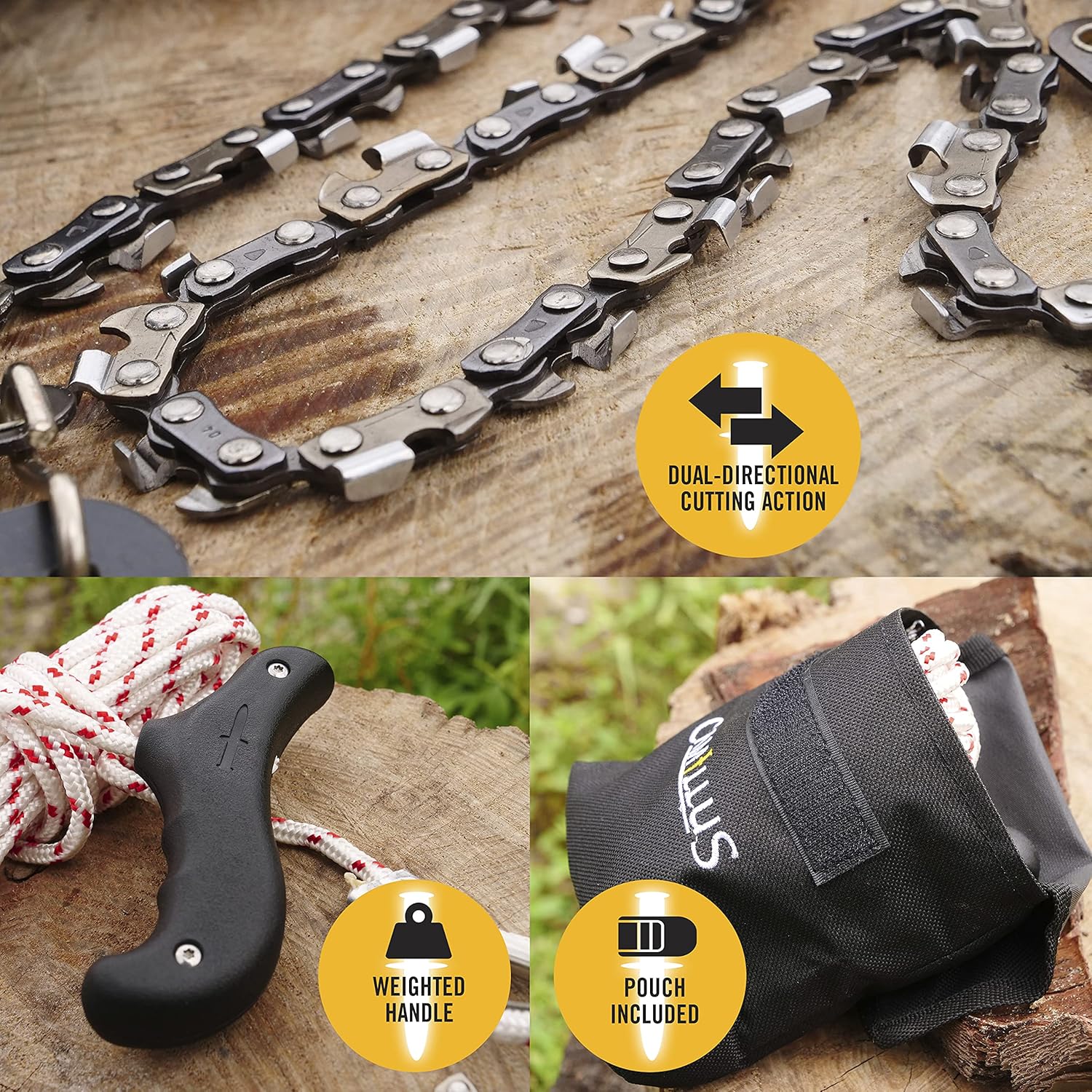 CAMILLUS HIGHLIMB DUAL-DIRECTION BRANCH SAW: The Camillus High Limb saw allows you to clear high branches from the safety of the ground. Unlike other branch saws, our patent-pending handle design incorporates weights, allowing you to sling the rope over high branches with ease and precision. The chain saw blade also boasts a dual-direction design, allowing you to cut in both pulling motions for maximum efficiency. For added security, two 20-ft sections of 300lb paracord provide durable and strong connections to safely handle the toughest jobs. A storage pouch with a belt loop is also included to store the saw when not in use. There are numerous applications of the Highlimb saw, some of which include setting up a treestand, clearing shooting lanes before hunting season, storm cleanup, or simply maintaining your property. Truly embodying our signature degree of versatility, the Highlimb saw will make for an integral addition to your tool kit. MAIN FEATURES: - Weighted Handle; - 28 Cutting Links; - Balancing Links to keep saw blade in ideal cutting position; - Pouch Included; - +17' Reach; - 20"" Saw, 34.6' Overall; - Dual-Directional Cutting.