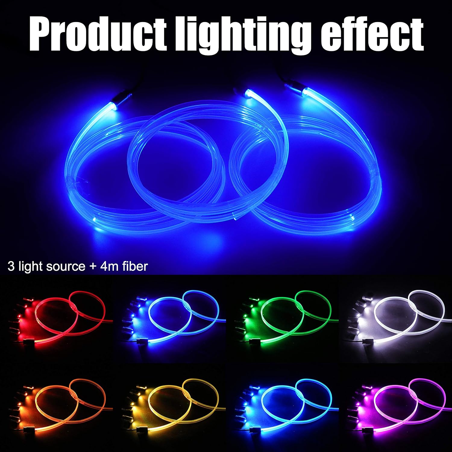 Specifications: ▸Wire diameter: 0.5mm with 1mm clip ▸Sewing edge: 3.0mm ▸Cable length: 3 m / 4 m / 5 m / 6 m / 8 m ▸Input voltage: DC 12V-24V ▸Power method: Cigarette lighter plug or DC line ▸Control method: RF Remote / APP / Control Box ▸Color: Red/Orange/Yellow/Green/Blue/White/Purple/Cyan (64-colors optional) Features: ▸Multi-colors & Memory Function: Infinitely DIY colors over 16 million colors and different tones for selection, you can customize your own unique color modes to perfect enhancement for upgrading your car. With memory chip, after setting the colors, re-start the light with last setting. ▸Sync with Music: Unique music mode, built-in high sensitivity mic, spectrum with light and colors adjusting automatically base on the ambient sound, and then the led lights will change their colors following the music rhythm, give your lover or family surprise and romantic atmosphere in special nighttime. ▸Brightness Adjustable: Various levels of brightness for optional, dim/brighten the light. You will like darker light while your child sleeping, middle bright while you watching movie. The brightest light for daily life. Customize the brightness for every scenes and protect eyesight. User Manual: 1.Open the door and fix the fiber into the gap of door panel. 2.Fix the tube and find the position inside the door. 3.Insert the light source tube into the whole in the front door. 4.Insert the light source into the host and reinstall the door panel. 5.Plug the cigarette lighter directly into cigarette lighter socket. 6.Scan the QR code from this controller for the interior lighting of your car with your phone (Android/IOS). 7.Open the app and connect the app to the light bars via Bluetooth. Finally, you can design your colors and modes all by yourself on your phone. Package List: Car Interior Ambient Light Kit & Manual