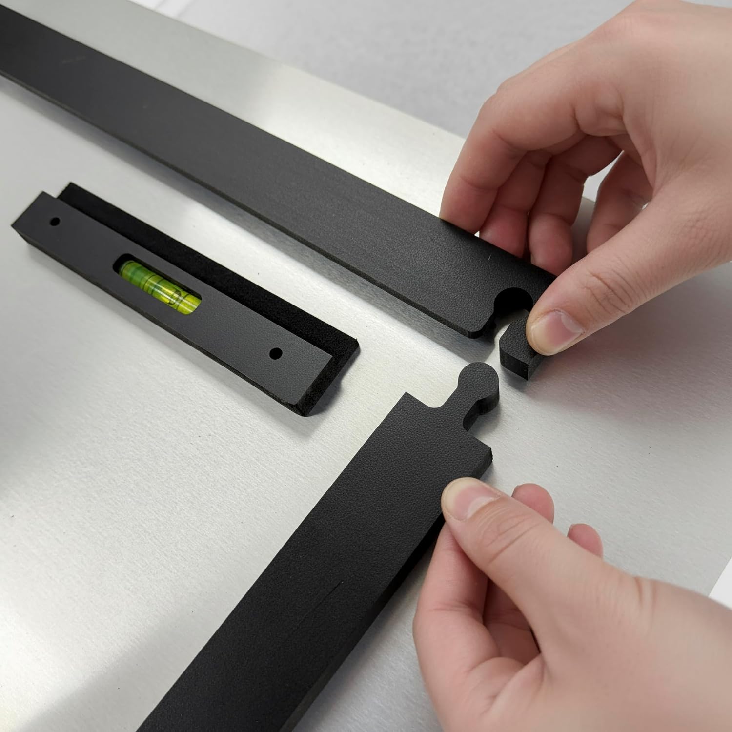 Mount your ChromaLuxe metal or acrylic photo prints quickly and securely with the ChromaLuxe 4-Way French Cleat Hanging System—the professional choice for creating modern, floating wall art displays. Using patented 4WFC technology, this innovative wall mounting kit installs in seconds and includes an integrated level for perfect alignment every time. The lightweight yet durable polymer frame provides a rigid, stable backing that supports your print without adding extra weight. A strong PSA rubber adhesive ensures a permanent, long-lasting hold—superior to standard acrylic tapes. Its versatile 4-way design allows you to hang your photo panels horizontally or vertically, making it ideal for photographers, artists, and framers who demand precision and flexibility. This eco-friendly mounting system is made from 100% recyclable E-PVC with 12% post-industrial regrind content, offering a sustainable and reliable solution. The result is a sleek ½-inch floating photo mount effect that makes your artwork appear to elegantly “float” off the wall. Proudly made in the USA, the ChromaLuxe 4-Way French Cleat Hanging System delivers professional-grade results for aluminum and acrylic prints—perfect for homes, offices, galleries, and studios.Features: This is a PACK of 10 KITS of 8" x 10" Chromaluxe 4 Way French Cleat Mount for Photo Prints. The Kit includes two 8" bars and two 10" bars (1.25" wide and 1/2" thick). Backed by 3M adhesive tape for easy mounting on your photo prints. Includes wall mount cleat with built in level and 2 screws and anchors.Looking for a clean, simple, and fast way to mount your ChromaLuxe, Metal or Acrylic panels? Look no further! This lightweight hanging system features a rigid mounting polymer with ½” thick float mount for secure and stable display. Using patented 4WFC technology, The ChromaLuxe 4-Way French Cleat Hanging System utilizes a mounting bracket (cleat) with an integrated level for easy, accurate