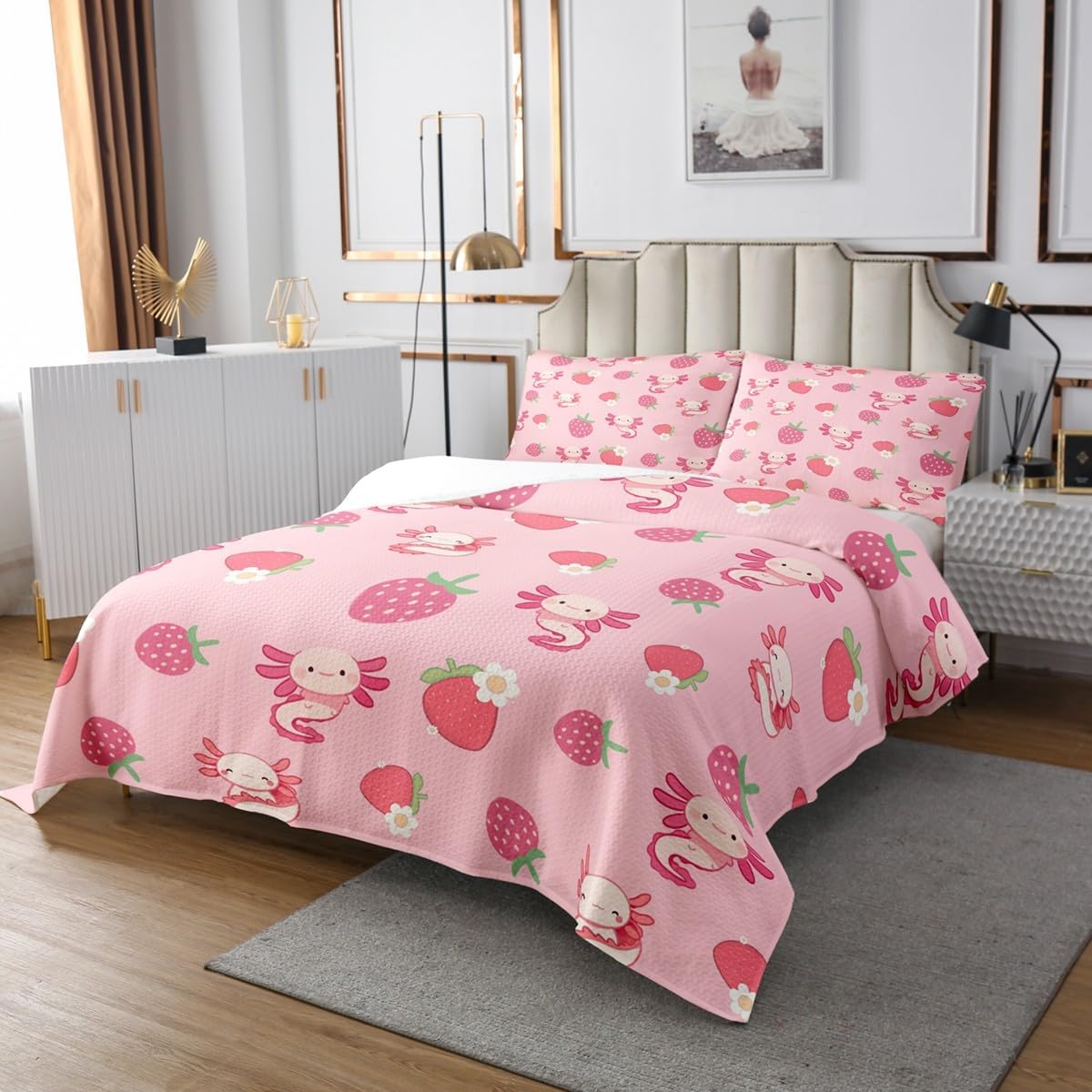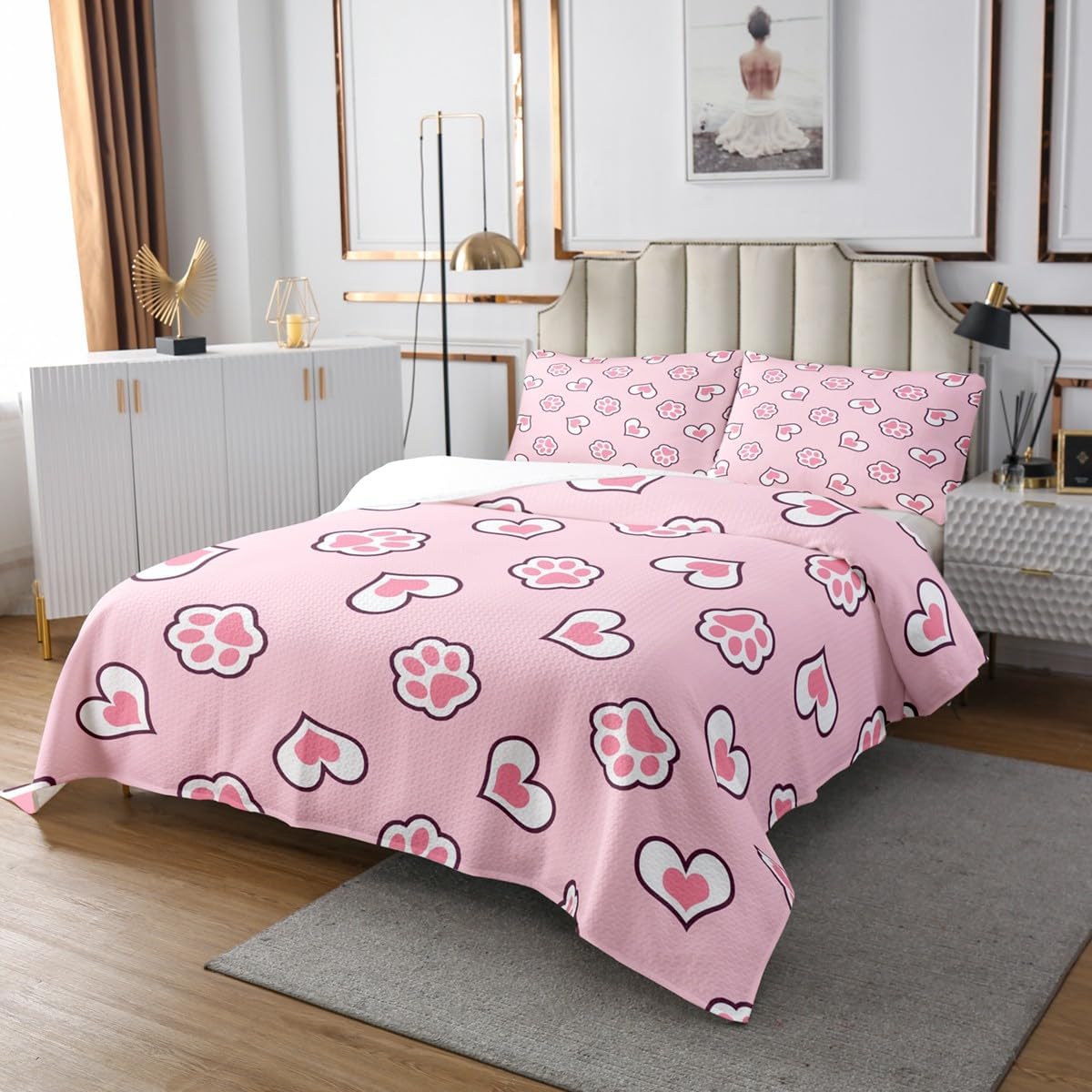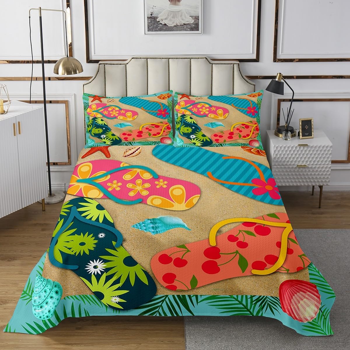 Best gifts and blessings: Makeover your bedrooms every season with our bedspread/sets! Perfect item for your room, girls boys youth room, master bedroom. Also a great gift idea for your mom, dad, sister, brother, grandma, wife, husband, daughter, son and all other beloved Size Information: 1 Twin size quilted bedspread (68" W X 90" L) & 1 quilted pillow sham (30" W X 20" L). 1 Queen size quilted bedspread (90" W X 90" L) & 2 quilted pillow shams (30" W X 20" L). 1 King size quilted bedspread (104" W X 90" L) & 2 quilted pillow shams (36" W X 20" L). Useful and practical: A luxurious product for homes, dorm rooms, hotels, guest rooms. Practical to use for being polyester, feels like cotton which is Super Soft & Breathable. No chemicals used, No dye substance harming the health of you or your family. Unique design: Vivid Colors won't fade thanks to new 3D digital printing methods. These unique designs match well with various color palettes of your rugs, curtains, headboard, furniture, and all other decor accessories. Personalized: As manufacturers of digital printed home textiles, we follow current trends and bring you the latest home fashion. Either a gift to your family or friend, relative or boyfriend girlfriend, or to yourself, the item should be interesting and authentic. Note: The Bedspread & Pillow Shams are printed on the Front Side Only, the back of them are white colored. Comforter is Not Include in the set. Guarantee: Your satisfaction is our #1 Priority - If you have any questions, send an email and we will provide you with a solution within 24h.