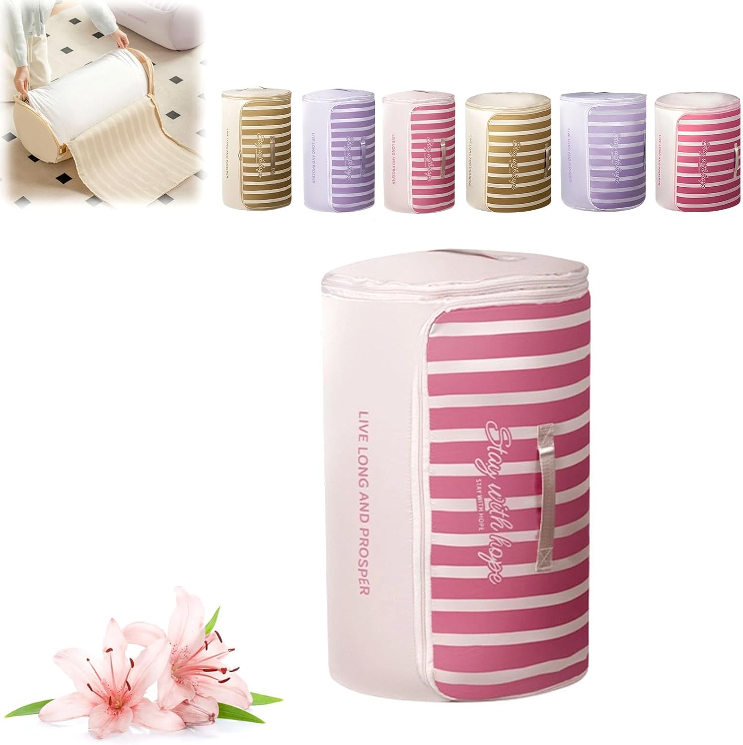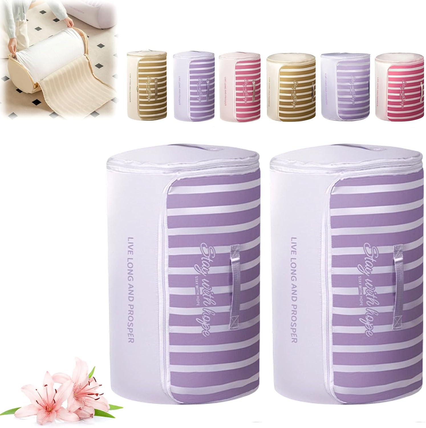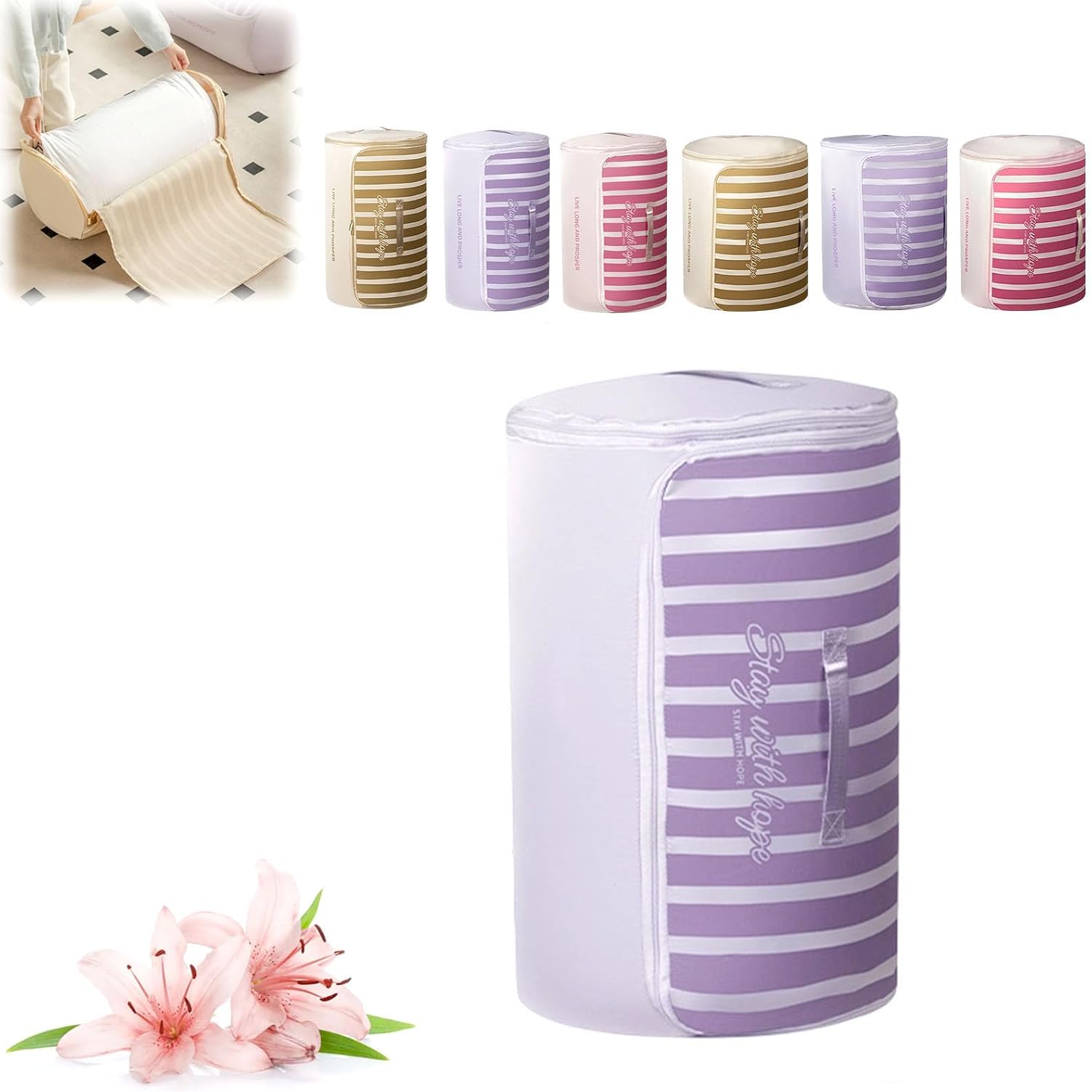 Cylindrical Roll-Up Quilt Storage Bag with Zipper Compression System Are you struggling with bulky quilts and blankets taking up too much space? Our Cylindrical Roll-Up Quilt Storage Bag is specifically designed to solve your storage headaches. By rolling your bedding into a neat cylindrical shape, you can save up to 50% more space compared to traditional square storage bins Premium Quality You Can Trust Made from premium, tear-resistant fabric, this bag is built for longevity. Whether you are moving house or just organizing your closet, our storage bag protects your valuable duvets, comforters, and seasonal clothes Thoughtful Design for Easy Access We understand the importance of convenience. That’s why our storage organizer features a wide opening with a durable zipper, making it easy to pack and unpack even the thickest winter blankets. The reinforced handles are double-stitched to ensure they won't rip when carrying heavy loads Specifications: Name: Cylindrical Roll-Up Quilt Storage Bag with Zipper Shape: Cylindrical / Roll-up Style Closure: Smooth Two-way Zipper Portability: Reinforced Dual Handles Size: M:55x33 cm/21.65x12.99 inch L:55x45 cm/21.65x17.71 inch Application: Comforters, Blankets, Quilts, Duvets, Pillows, Clothing Usage Scenarios: Closet, Under-bed, Attic, RV, Camping, Moving Package includes: 1/2/3 pcs * Cylindrical Roll-Up Quilt Storage Bag with Zipper Note: 1.Please Contact us at any time if you have any questions, we will give you the most satisfactory solution within 12 hours. 2.If there is any problem with the package, please don't worry, you can always contact us through buyer message.