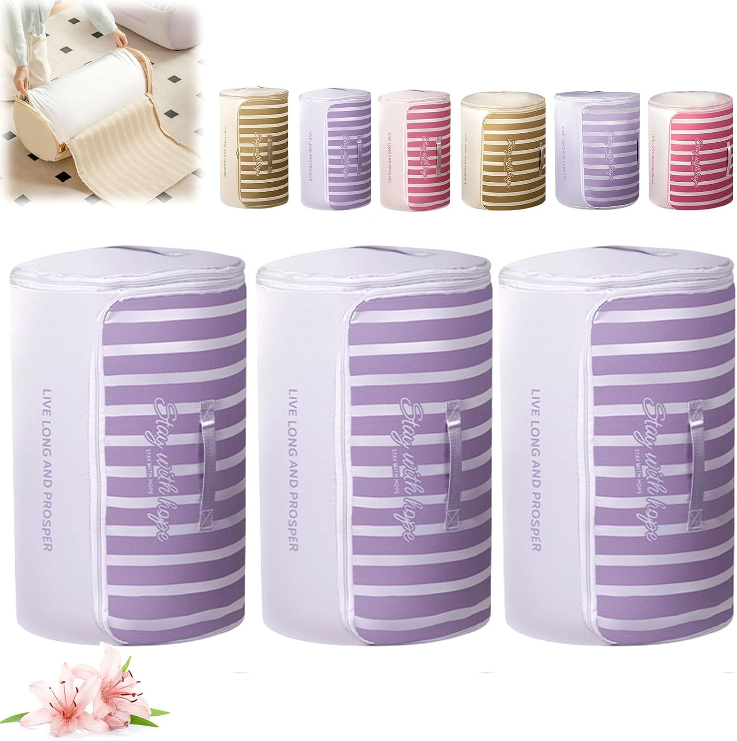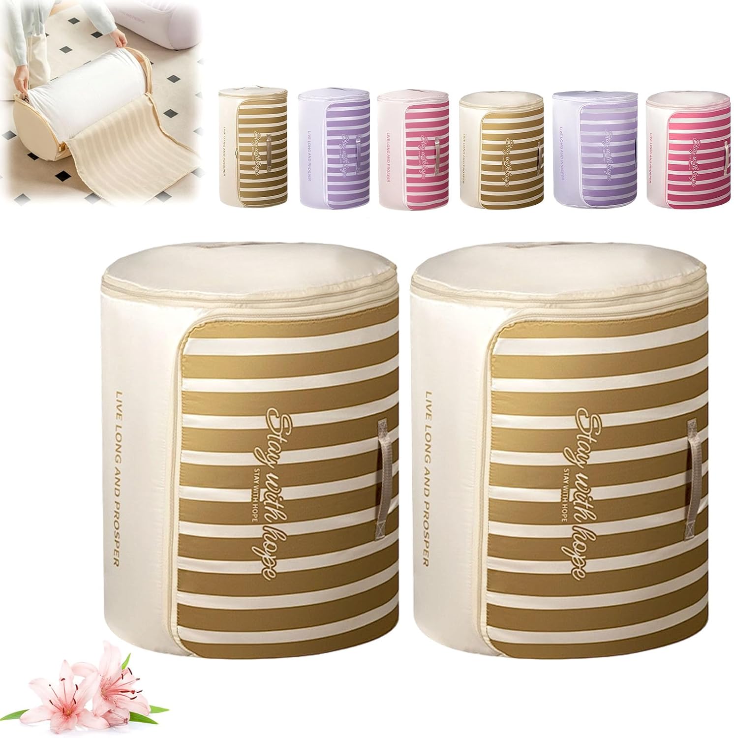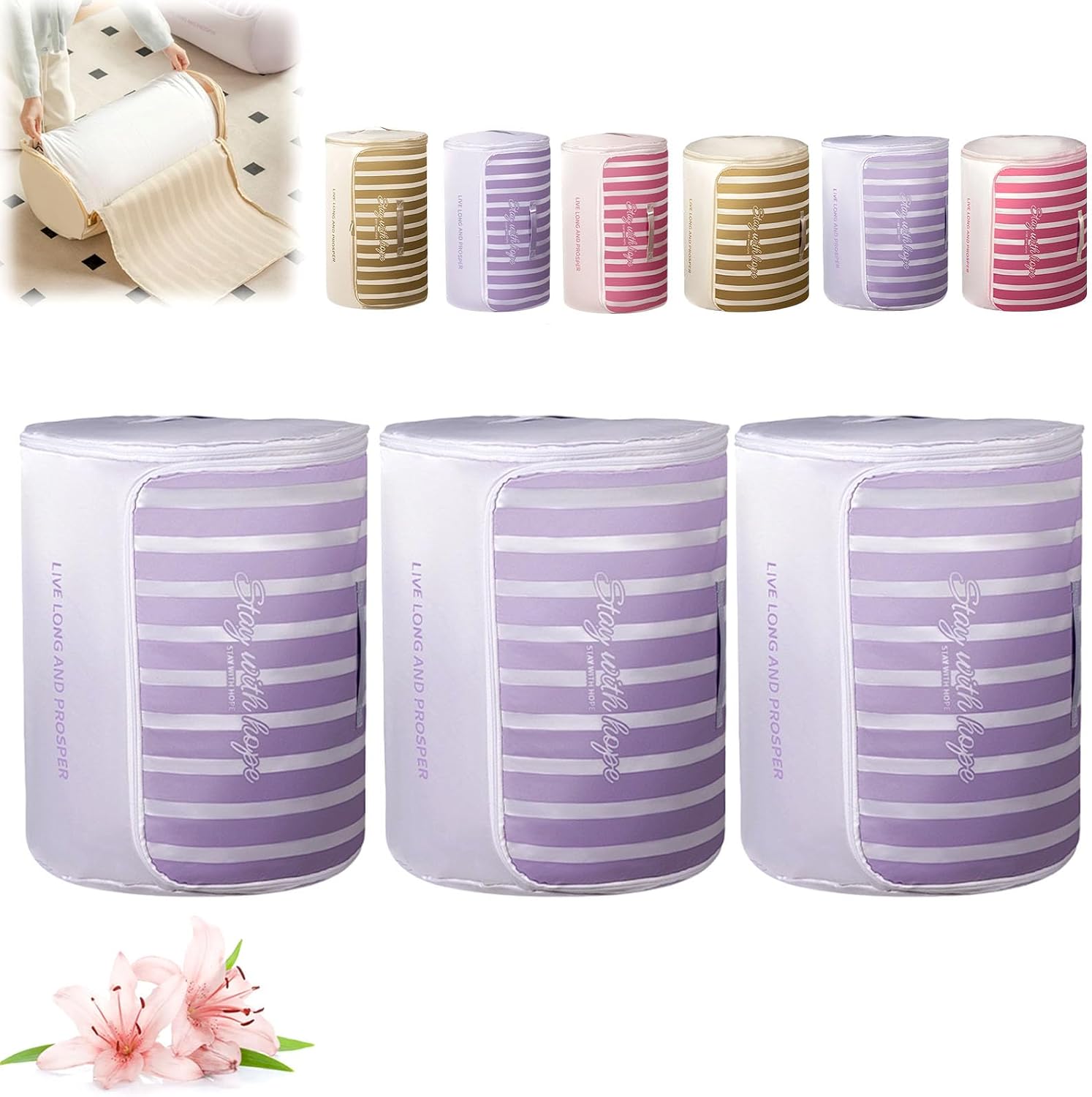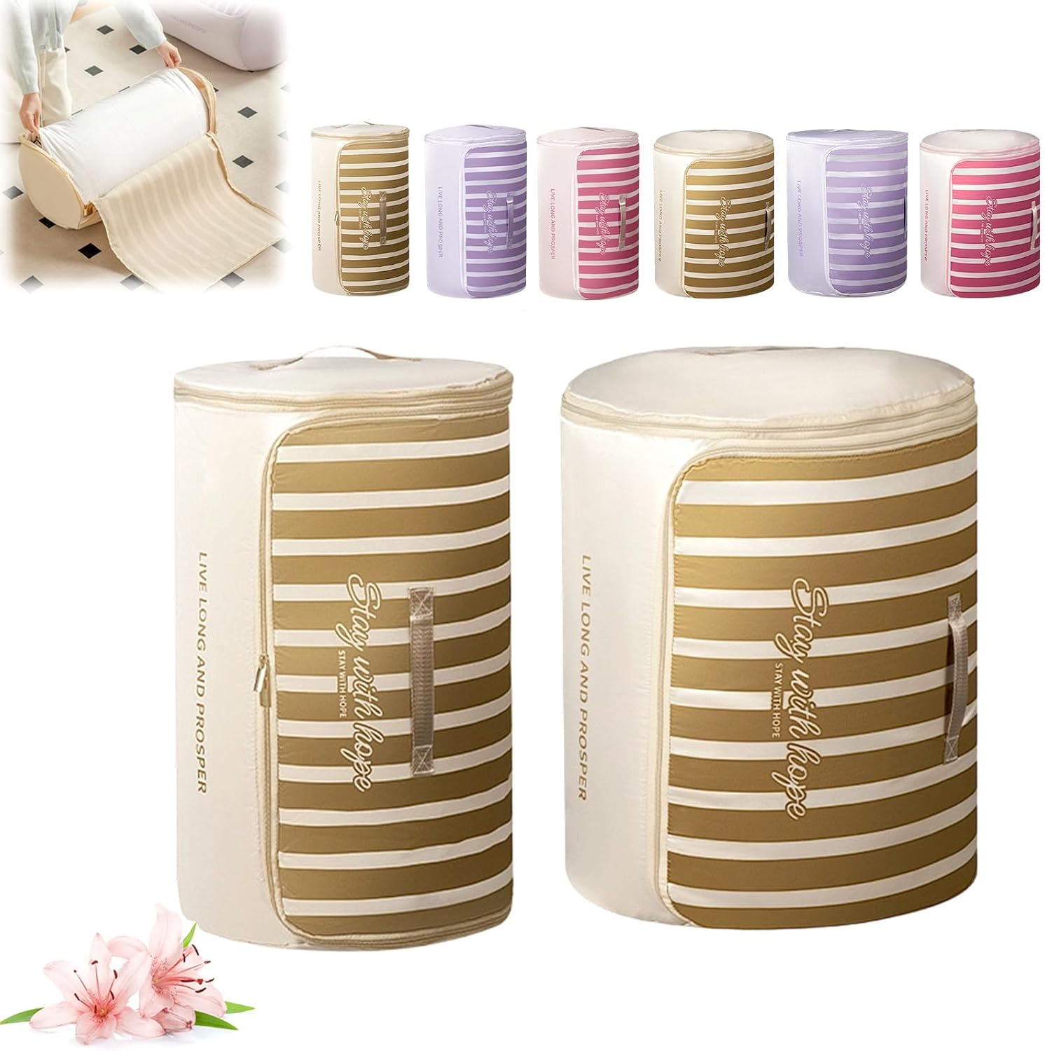 Cylindrical Roll-Up Quilt Storage Bag with Zipper Compression System Are you struggling with bulky quilts and blankets taking up too much space? Our Cylindrical Roll-Up Quilt Storage Bag is specifically designed to solve your storage headaches. By rolling your bedding into a neat cylindrical shape, you can save up to 50% more space compared to traditional square storage bins Premium Quality You Can Trust Made from premium, tear-resistant fabric, this bag is built for longevity. Whether you are moving house or just organizing your closet, our storage bag protects your valuable duvets, comforters, and seasonal clothes Thoughtful Design for Easy Access We understand the importance of convenience. That’s why our storage organizer features a wide opening with a durable zipper, making it easy to pack and unpack even the thickest winter blankets. The reinforced handles are double-stitched to ensure they won't rip when carrying heavy loads Specifications: Name: Cylindrical Roll-Up Quilt Storage Bag with Zipper Shape: Cylindrical / Roll-up Style Closure: Smooth Two-way Zipper Portability: Reinforced Dual Handles Size: M:55x33 cm/21.65x12.99 inch L:55x45 cm/21.65x17.71 inch Application: Comforters, Blankets, Quilts, Duvets, Pillows, Clothing Usage Scenarios: Closet, Under-bed, Attic, RV, Camping, Moving Package includes: 1/2/3 pcs * Cylindrical Roll-Up Quilt Storage Bag with Zipper Note: 1.Please Contact us at any time if you have any questions, we will give you the most satisfactory solution within 12 hours. 2.If there is any problem with the package, please don't worry, you can always contact us through buyer message.