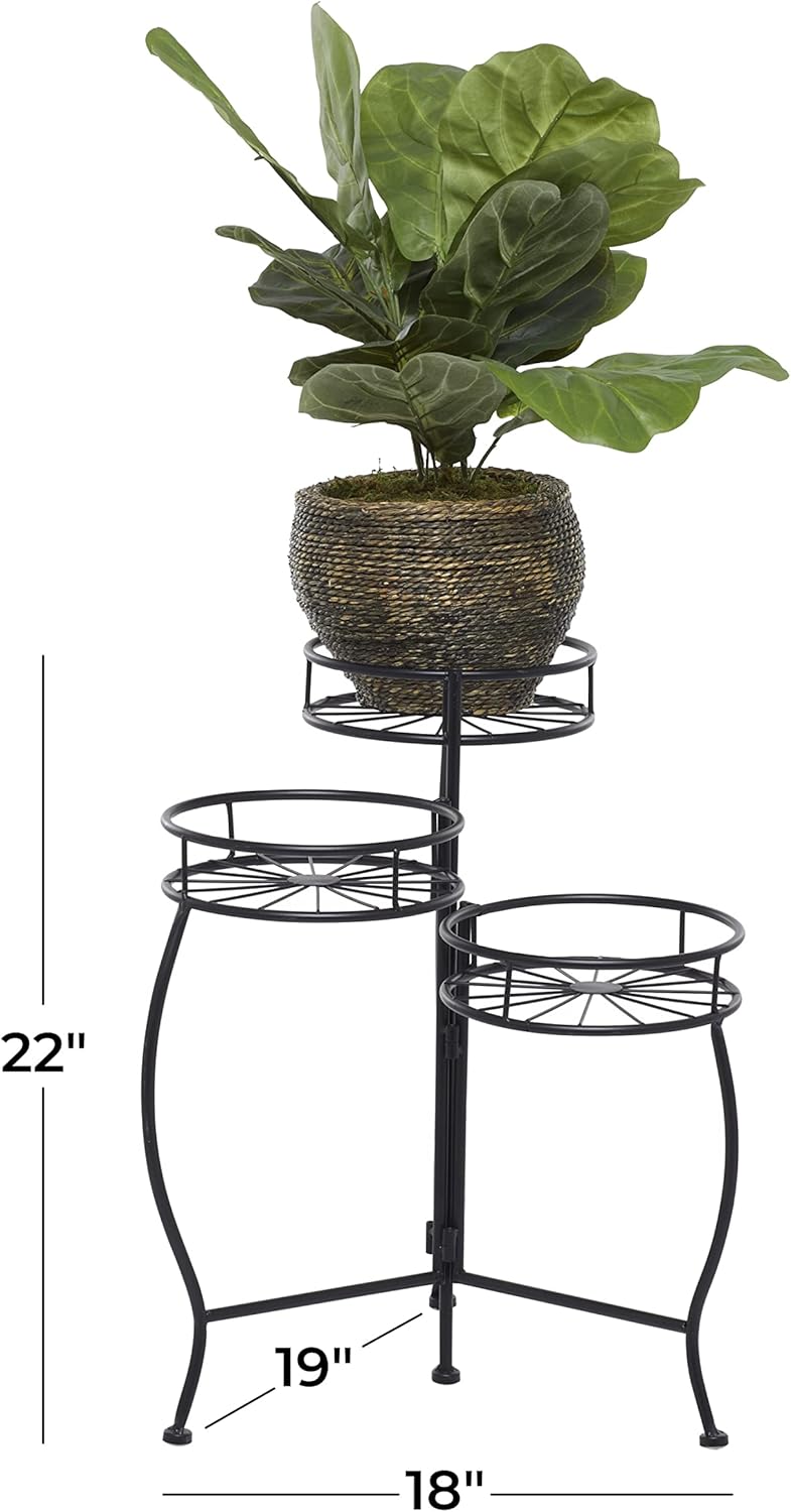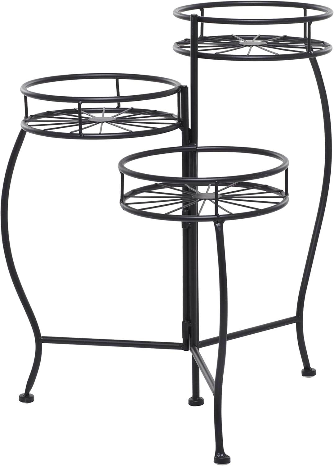 This starburst plant shelf can be conveniently placed in living rooms, gardens and patios, saving floor space while adding depth to your setting. This item ships in 1 carton. Suitable for indoor and outdoor use. This item ships fully assembled in one piece. Maximum weight limit is 30 lbs. This is a single black colored plant holder. Transitional style.