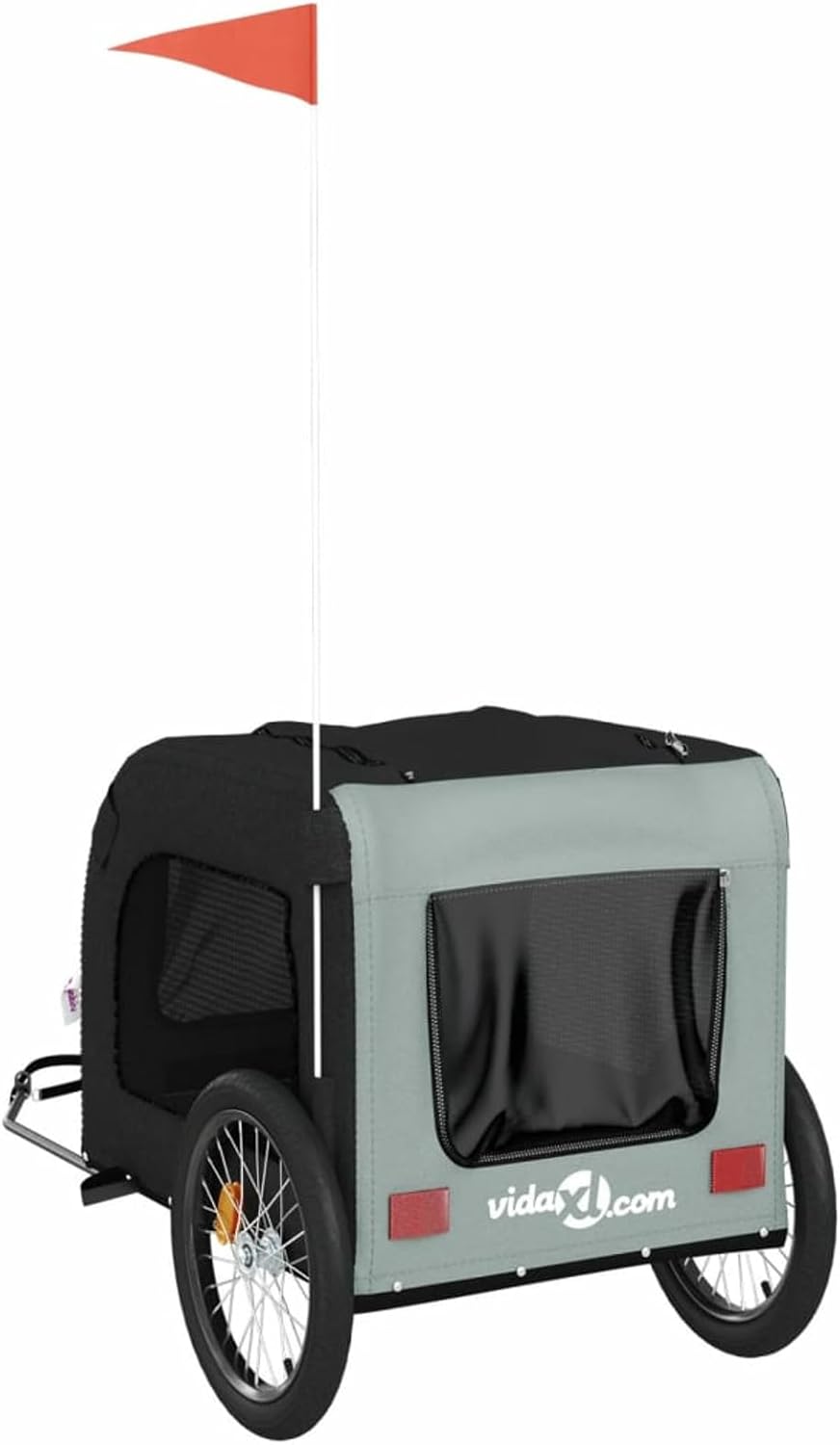 This handy pet bike trailer is a great addition to your pet's day out, allowing your pet to enjoy a more comfortable journey. Durable frame: Iron is a b and hard material. It's a solid favourite in industrial and furniture construction. With a frame made of iron, the bicycle trailer is sturdy and reliable, giving you peace of mind when riding on the road. Comfortable bike trailer: This bike cargo trailer is made from oxford fabric and features the PVC cover to keep your pet out of the drizzle. In addition, there is a black load-bearing board at the bottom for comfortable space. Convenient design: Zippered front and back doors make it easy to get in and out, and the mesh windows and a zipped roof allow air to circulate inside and keep your pet cool during the journey.Safe riding: The bicycle cargo trailer has two large back wheels and one small front wheel that allow for smooth and safe travel on various grounds and the reflectors on the outside provide visibility in the dark, plus the flag can increase traffic safety. Wide applications: Perfect for carrying small dogs and pets, this pet bike trailer can be attached to your bike easily. It can also be used to carry groceries, camping equipment, sporting goods, or whatever you need to take with you!Colour: Yellow and grey Material: Oxford fabric, iron, PVC Overall dimensions: 68 x 134 x 73 cm (L x W x H) Cabin dimensions: 55 x 80 x 55 cm (L x W x H) Flag length: 139 cm Maximum load capacity: 45 kg Drawbar load capacity: 3-11 kg Assembly required: Yes