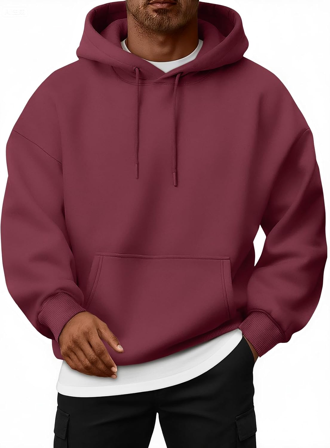 • FEATURES:Designed for ultimate comfort with an oversized, loose fit. Includes a practical front kangaroo pocket, an adjustable drawstring hood with metal aglets, and a classic pullover style. High-quality stitching ensures durability during gym sessions and daily wear