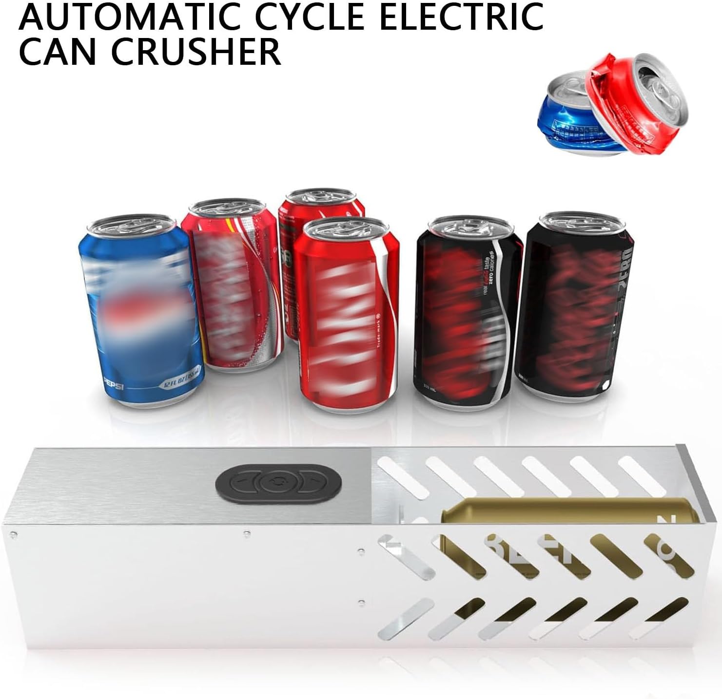 ELECTRIC CAN CRUSHERThe excellent recycling tool, the aluminum electric can crusher, can easily compress the size of the cans, saving space in trash cans and recycling boxes, making it easier for sanitation workers to recycle.FEATURESElectric compression, no need to connect an additional air compressor.When this electric can crusher works, the speed is moderate and not too fast.Standard aluminum cans and water bottles can be compressed to 1/5 of their original size, saving storage space.Can help you recycle discarded aluminum cans, and protect the environment and resources.Suitable for home, bar, restaurant, school, and other places.SPECIFICATIONProduct Name: Electric Can CrusherProduct Size: About 43.5×9×9cm/17.13×3.5×3.5"Voltage: 100V-240VPACKING LIST1 × Electric Can Crusher