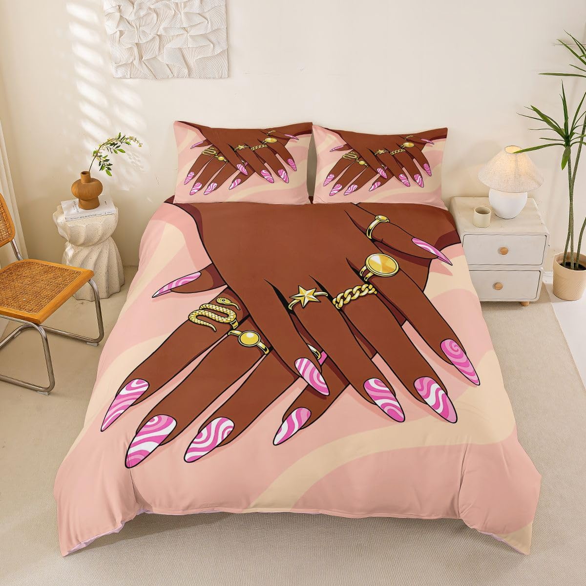 I: Package Include 1 Duvet Cover and 2 Pillowcases The Modern Duvet Cover Set Pattern Bedding Set,Simply Decorating Your Rooms Any Time You Want,Bringing You Fresh Feel for Year Round Use. Long Lasting Made From Polyester Microfiber,The Duvet Cover Offers Long - Lasting Strength,A Noticeably Soft Hand Feel. II :Size Information Toddler Size: 2Pcs Duvet Cover Set:1 Duvet Cover 42"x58"(106x174cm),1 Pillowcase 20"x30"(51x75cm),Without Comforter. Twin Size: 2Pcs Duvet Cover Set:1 Duvet Cover 68"x90"(173x228cm),1 Pillowcase 20"x30"(51x75cm),Without Comforter. Full Size: 3Pcs Duvet Cover Set): 1 Duvet Cover 79"x90"(200x229cm),2 Pillowcase 20"x30"(51x75cm),Without Comforter. Queen Size: 3Pcs Duvet Cover Set:1 Duvet Cover 90"x90"(229x229cm),2 Pillowcase 20"x30"(51x75cm),Without Comforter. King Size: 3Pcs Duvet Cover Set:1 Duvet Cover 104"x90"(264x229cm),2 Pillowcase 20"x36"(51x92cm),Without Comforter. III: Personalize Your Bedroom Beautiful Design and Colorful Print,Makes Your Bedroom Unique and Brings You a Wonderful Dream. IV: Washing Instructions Machine Wash Separately In Cold Water,Hang Dry,Do Not Bleach. V: Occasion The Cute Soft Duvet Cover Bedding Sets Designed for Children,Adult,Men,Women,Teens. This Duvet Cover Set Is Also Suitable for Full Seasons,Spring,Summer,Autumn and Winter. It Also Can Be Used As a present for Your Family and Friends. Such As Halloween,Christmas.