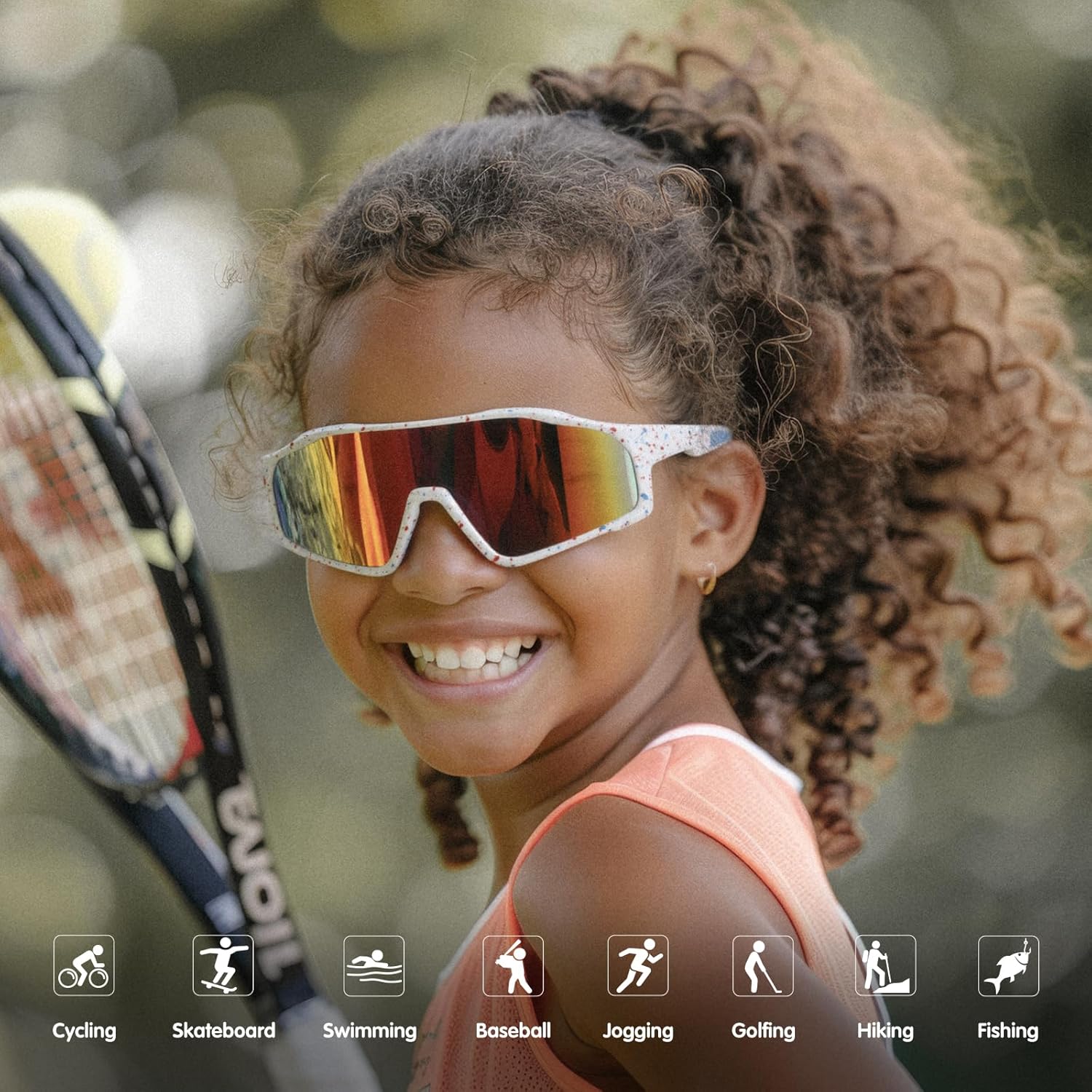 Eyebuddy Youth Baseball & Softball Sunglasses Protect young athletes' eyes with our durable baseball sunglasses, perfect for youth baseball sunglasses and softball sunglasses for girls. These kids baseball sunglasses feature shatterproof polycarbonate lenses with 100% UV400 protection, ideal for boys sunglasses age 10-1,baseball sunglasses youth 8-12 ,boys sunglasses age 8-10 ,baseball sunglasses for boys 6-8 and baseball glasses youth 8-12. The lightweight and flexible design stays secure during play, with anti-slip grips for active kids. Built to withstand slides and catches, they're the top choice for pit vipers youth boys and competitive players who need reliable performance.