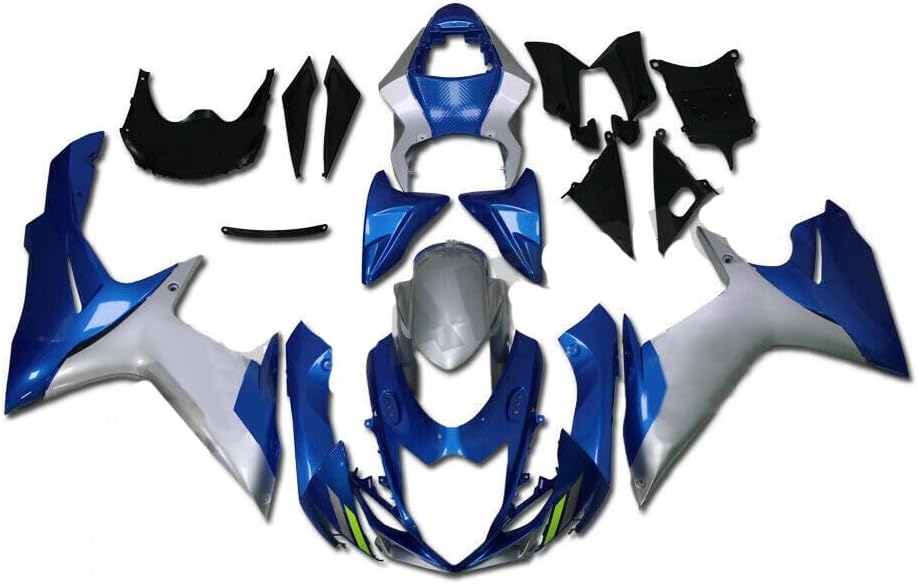 Fit for:Suzuki 2011-2026 GSXR 600/750 Material:High quality, flexible and durable ABS plastics. Package includes:Fairing parts: front fairing + left & right side fairings front fender+ half tank cover+ tail fairing+ black trim parts; Trim parts: unpainted plastic black; windscreen, heat shield included; Color: As pictures show; Note: fairing bolts & Installation instructions are not included; The paint is not mixed by paint code. So we could not make sure the color of fairings 100% matches your original / OEM ones. Installation: 1. Professional instalation highly recommended. 2. Only compatible with original motorcycle, not modified ones. 3. Holes pre-drilled, fits just like OEM fairings.