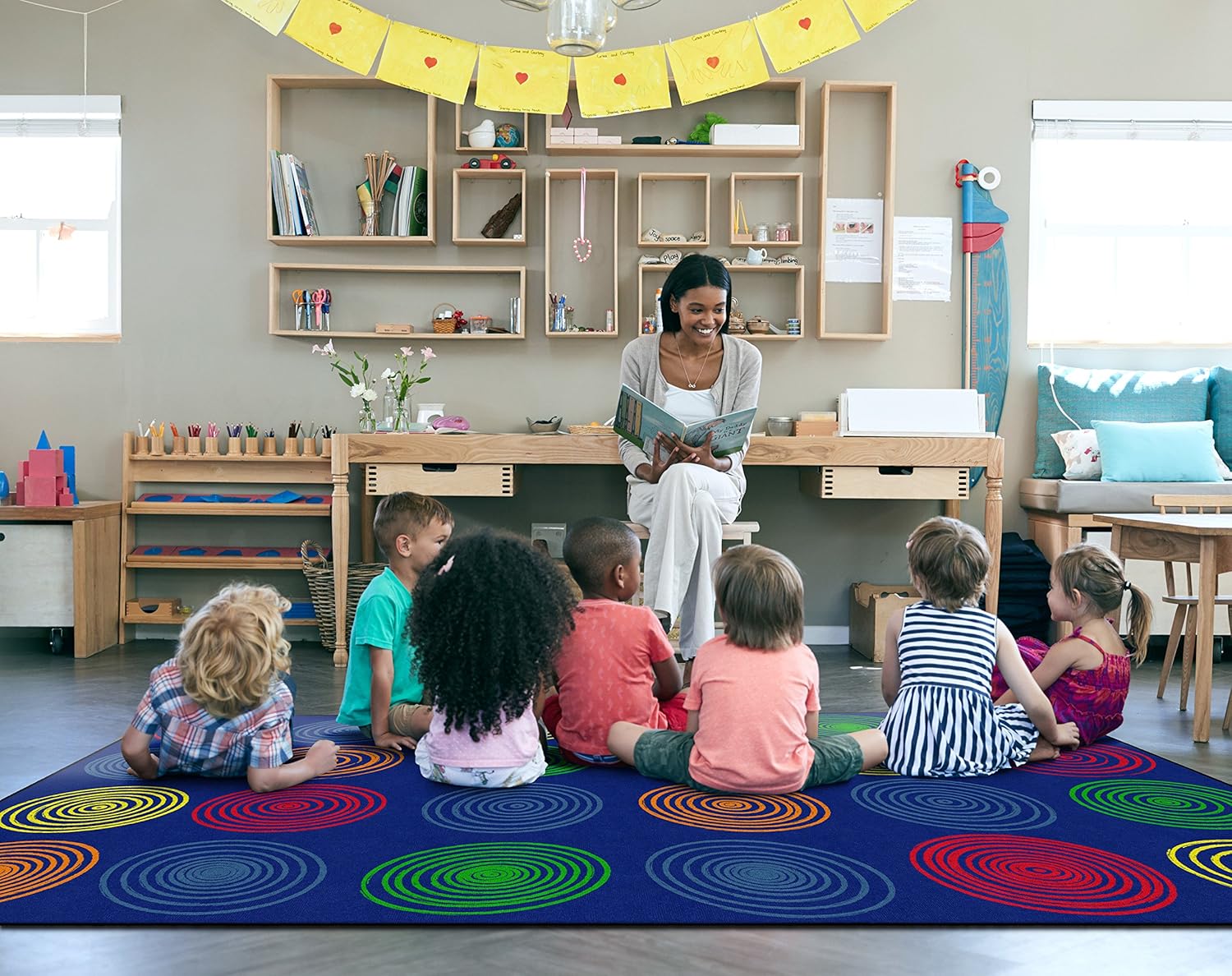 Sometimes classroom seating rugs can be busy. If your classroom could use a little less 'busy', the new Circles classroom seating carpets are one more strategy to create a little more calm in your classroom. All Flagship Carpets are CRI green Label Plus certified and made 100 percent in the USA.