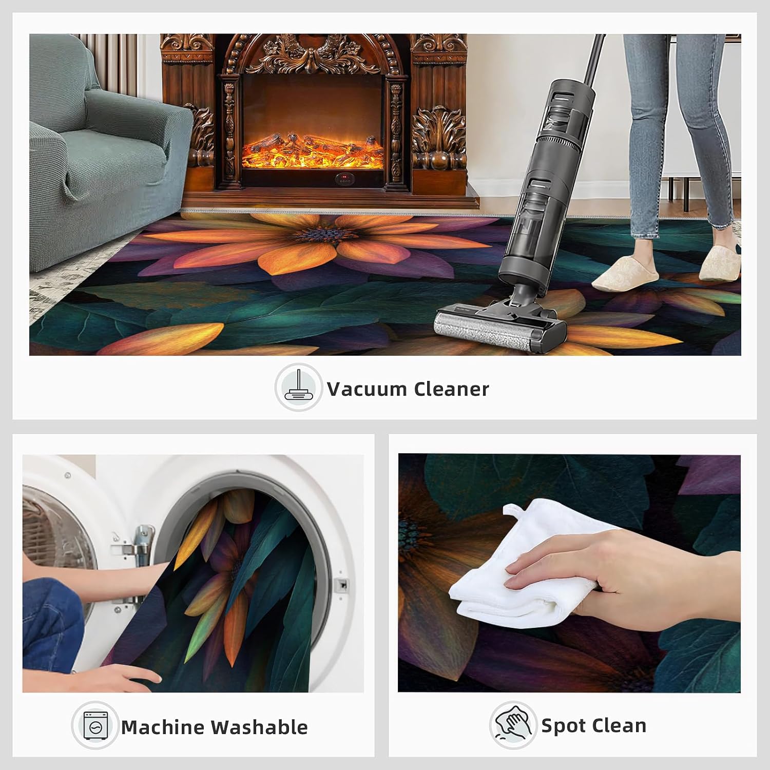 Soft Comfort You Can Feel, Style You Can SeeThe HYGIUID area rug combines plush flannel comfort with practical design, creating a cozy foundation for everyday living.- Designed for ComfortMade with soft flannel and a supportive sponge layer, this rug provides a gentle, cushioned feel underfoot—ideal for relaxing mornings, barefoot evenings, and long days at home.- Built for Real LifeThe non-slip rubber backing, enhanced with grip tape, helps keep the rug securely in place, offering added safety for families while protecting your floors from shifting and wear.- Style That LastsUsing advanced 3D printing technology, the patterns appear vivid and dimensional, maintaining their look over time without appearing flat or faded.- Easy MaintenanceRoutine care is simple—vacuum regularly or spot clean when needed. Designed to stay beautiful without demanding extra effort.Size:2ft x 4ft (24in x 48in, 60 cm x 120 cm)Package Includes:Area Rug × 1Warm Tips:* Colors may vary slightly due to screen settings.* Rug is folded for shipping—creases will relax naturally within 1–2 days. (If necessary, you can use a low-temperature iron on the back to remove creases.)* Avoid prolonged direct sunlight to help maintain color vibrancy.