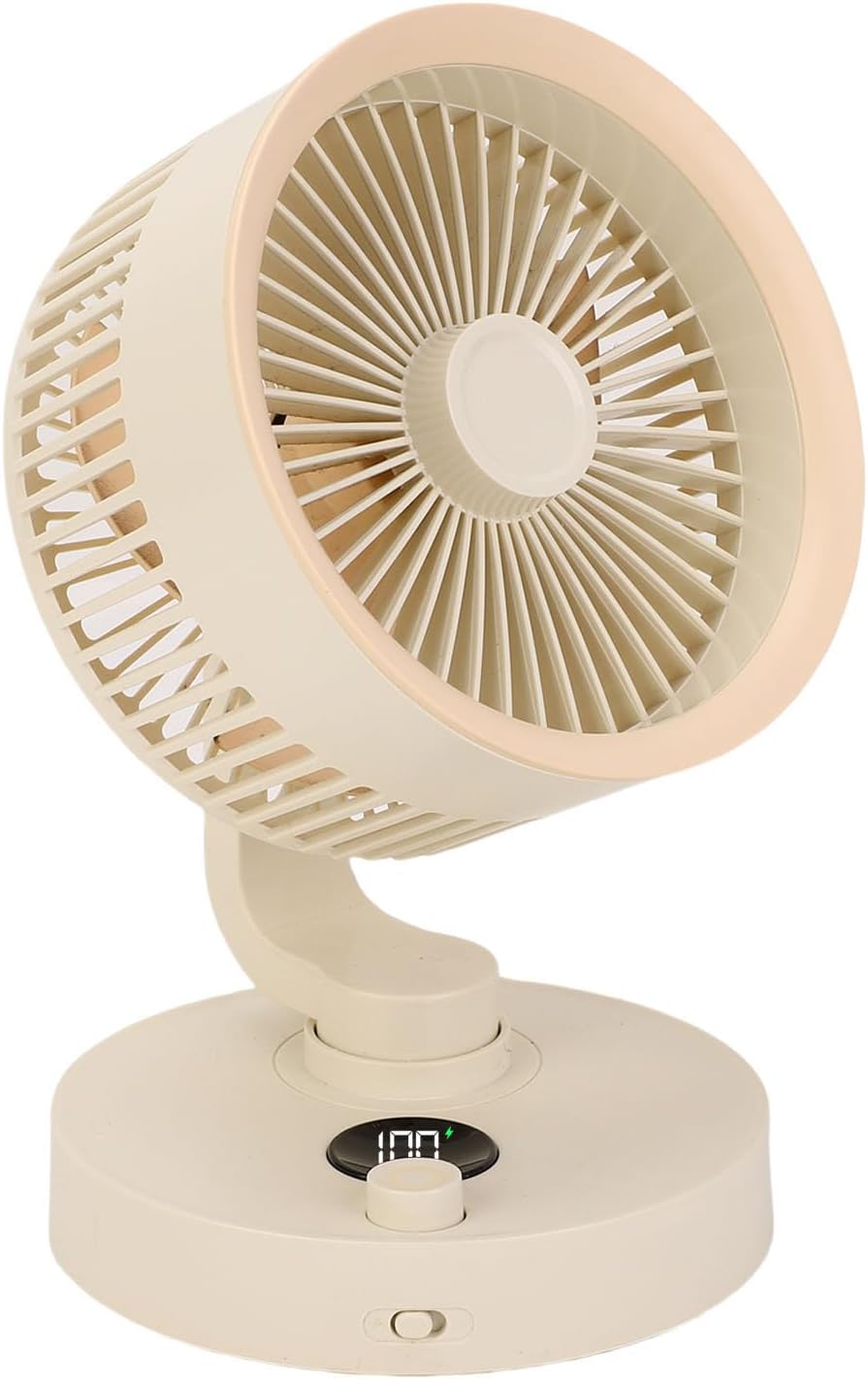 [Multiple Speed Settings]Experience 100 speeds with a turbocharged motor and deep pitch vanes, generating up to 253 CFM airflow for optimal cooling. [Silent Operation]Enjoy a peaceful environment with noise levels as low as 35dB, ideal for bedrooms or quiet office spaces. [Auto Oscillation]The fan automatically oscillates 90 degrees left and right, and can be manually adjusted 90 degrees up and down for versatile airflow direction. []LED screen clearly shows wind speed and battery percentage, making it easy to monitor settings and performance. [Convenient Charging]Features Type C fast charging for up to 390 minutes on low speed, with USB power option and removable front grille for easy cleaning. Item Type: Desktop Fan Product Material: ABS Battery: 1 x 3000mAh Li Battery (Built in) Usage Time: 130min for 100 gear, 390min for 1 gear Charging Time: 5.5h Noise Level: 1 x Desktop Fan 1 x USB C Data Cable 1 x User Manual