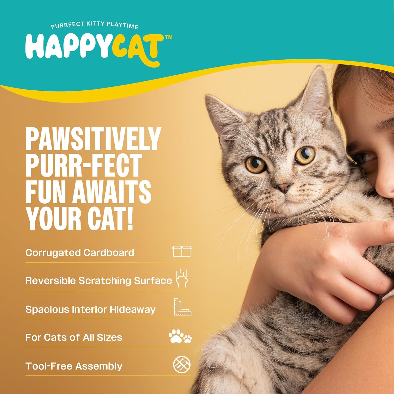 No dogs allowed! This treehouse scratcher from HappyCat is your cat’s exclusive clubhouse for scratching, lounging, and secret cat meetings.This clubhouse-inspired cardboard playhouse combines functionality and charm, making it the perfect addition to your cat’s indoor environment.Key Benefits:* Spacious interior dimensions: 12” long x 12” wide x 12.5” high* Reversible scratching panels for extended use* Sturdy and eco-friendly corrugated cardboard construction* Fun, playful tree house theme* Tool-free assembly for quick setupThis scratcher house encourages healthy scratching, climbing, and lounging while offering a cozy retreat. Perfect for single or multi-cat households, it keeps cats entertained and protects your furniture.With Royal Pet’s 30+ years of experience, you can trust this product to provide the quality and care your cat deserves. Give your cat a tree-top adventure with the HappyCat Tree House Cat Scratcher House!