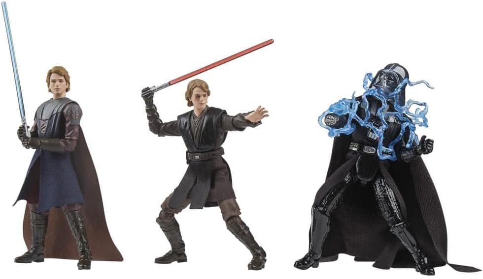 Enjoy your Star Wars legacy with this premium Star Wars Vintage Collection action figure. Recreating the changing form of Anakin Skywalker as Star Wars story and stage progress, this 3-3/4-inch scale action figure is a great addition to any fan's collection. Replicating their original line, this collectible action figure features premium details and embellishments that collectors will appreciate. May the Force be with you! (Each sold separately. May not be available in stock or handling. Star Wars products are produced by Hasbro under license from Lucasfilm Ltd HASBRO and all related trademarks and logos are trademarks of Hasbro, Inc. Set includes: 3 figures, 8 accessories Ages 4 and up. WARNING: Small parts are dangerous to swallow. Not for children under 3 years. (c) & TM Lucasfilm Ltd. (c) 2025 Hasbro. All Rights Reserved.