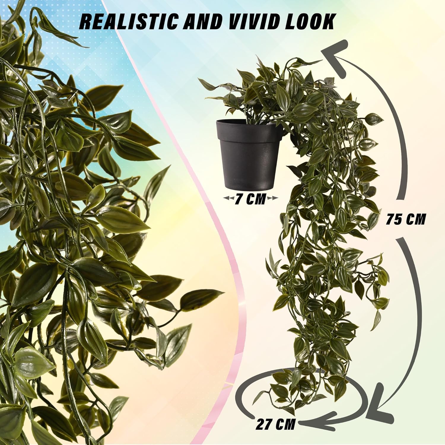 | Included Components | Arrangement Accessories, Artificial Vine Plant Small Potted in Black Pot Plastic Fake Green Vine for Office Home Decor Faux Plant for Hanging Baskets, Green |