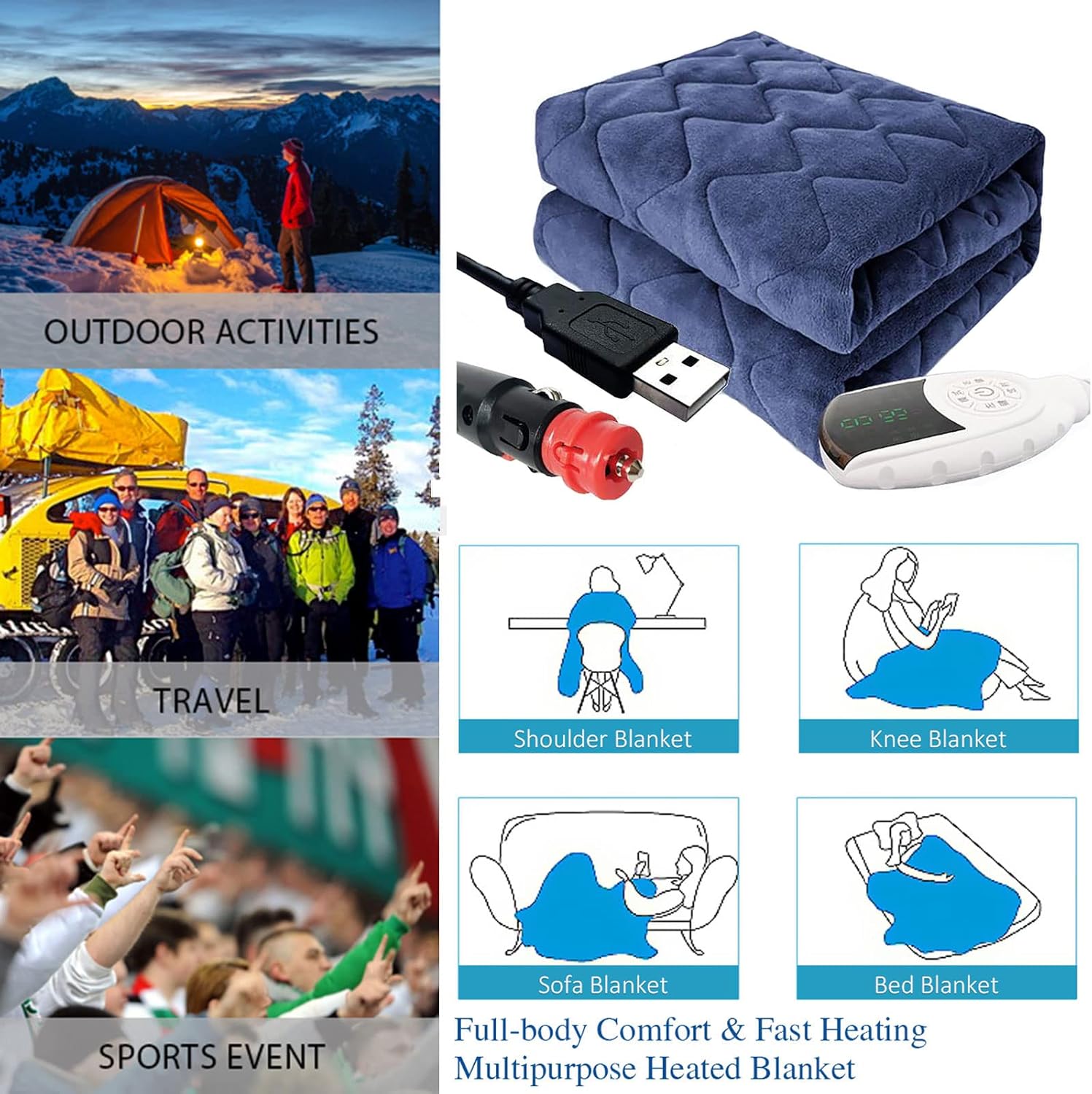 Do you need a heated shawl to protect yourself from the cold when shivering in the cold winterDo you want a wire-free electric when you want to move flexibly at home, go out to play, or attend a party Cordless Heating Throw USB Battery Operated Electric Wrap Shawl, Washable Heating Stadium Warm Knee Pad Portable Heating for Camping Travel Office Home Outdoor Use.⏩Description:1. This is multi-purpose, and can be used as hand warmers, cloaks, lunch break pillows, etc.2. Soft material: made of Lamb wool material, soft and comfortable, breathable, keep warm for a whole winter.3. USB charging, notebook, phone and charger pal all can be the power of heating blanket, easy to use. (product does not come with mobile power supply, so it needs to be provided by itself.)4. Does not slip off: the buckle will fix the heated stadium on your shoulders.5. Energy-saving ,Washableand warm, heating blanket, the best choice for you in such a cold winter⏩Specification:Product Name: Portable Electric Heated Size: 150x60cm, 150x80cm, 170x60cm, 170x80cm, 170x100cmMaterial: FlannelVoltage: 5v⏩The products include:1 x electric blanket⏩Remarks:1. The colors may have different as the difference display,pls understand.2. After use, please turn off the controller and un it from the power supply, then pack the blanket. Voltage: 110v-240v ;Bed Blankets double bed blanket electric heated throw blanket