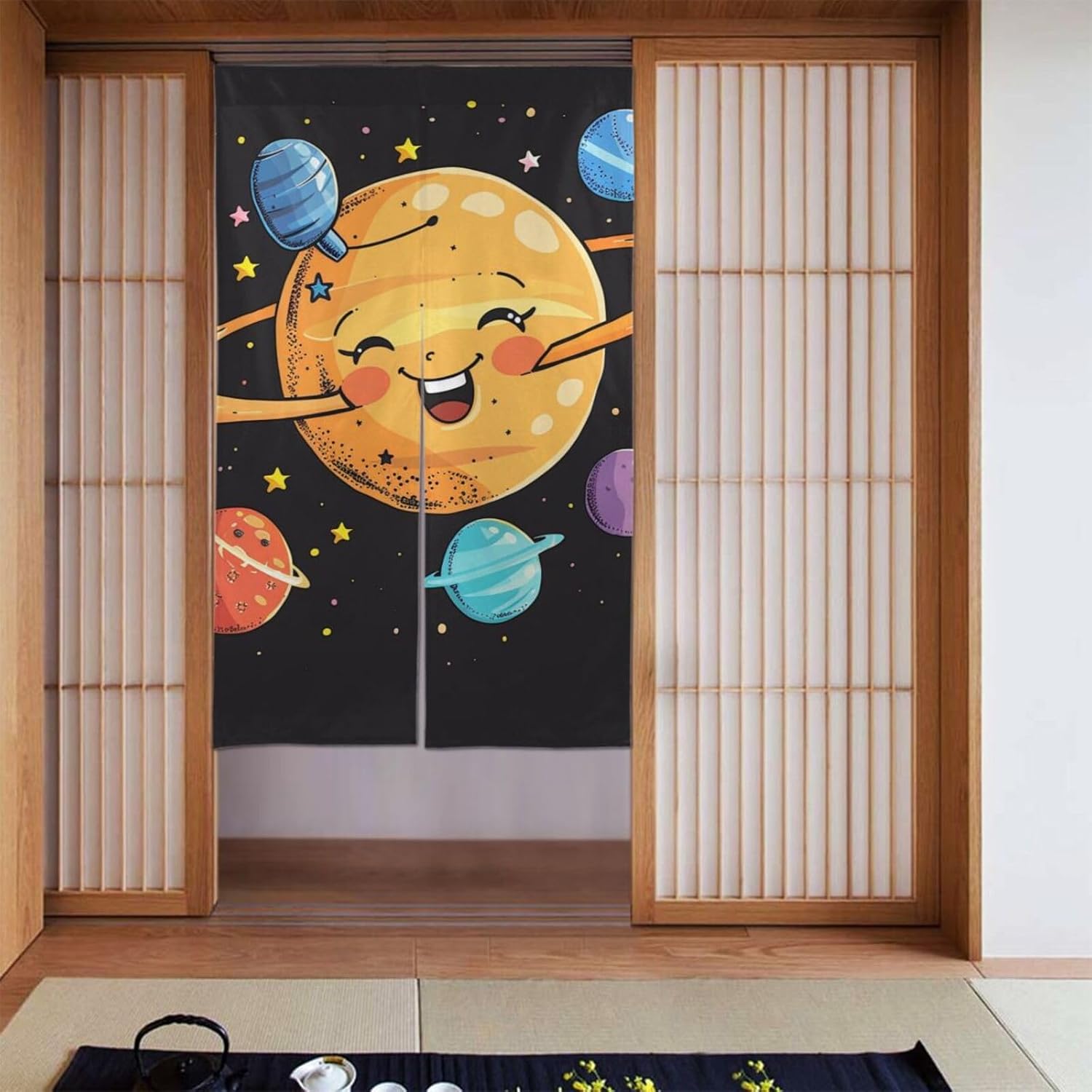 Transform any doorway or open space with this beautifully crafted 34x56-inch door curtain - designed for both function and fashion. Featuring two separate panels joined at the top, this room divider offers seamless walk-through convenience while enhancing your home's aesthetic with bold, high-definition printing.The intricate single-sided pattern showcases rich colors and artistic detail, instantly upgrading plain doorways into statement spaces. Whether you're dividing a studio apartment, covering a closet opening, or dressing up a kitchen entrance, this curtain delivers privacy without sacrificing light or style. Its lightweight yet structured fabric glides smoothly when parted, making it ideal for daily use in busy households.Crafted from premium polyester fabric, the curtain offers superior drape, shrinking and fading. Thanks to advanced digital printing technology, the design remains sharp and vivid even after repeated exposure to indoor lighting and occasional laundering - just hand wash or gently machine clean and air dry to maintain freshness.This versatile piece works across multiple rooms - use it as a bedroom partition, bathroom cover, pantry screen or dorm decor essential. It's especially popular among renters, tiny home dwellers, who want stylish, removable updates without permanent changes. Beyond utility, it makes a thoughtful gift for housewarmings, birthdays, or seasonal refreshes.