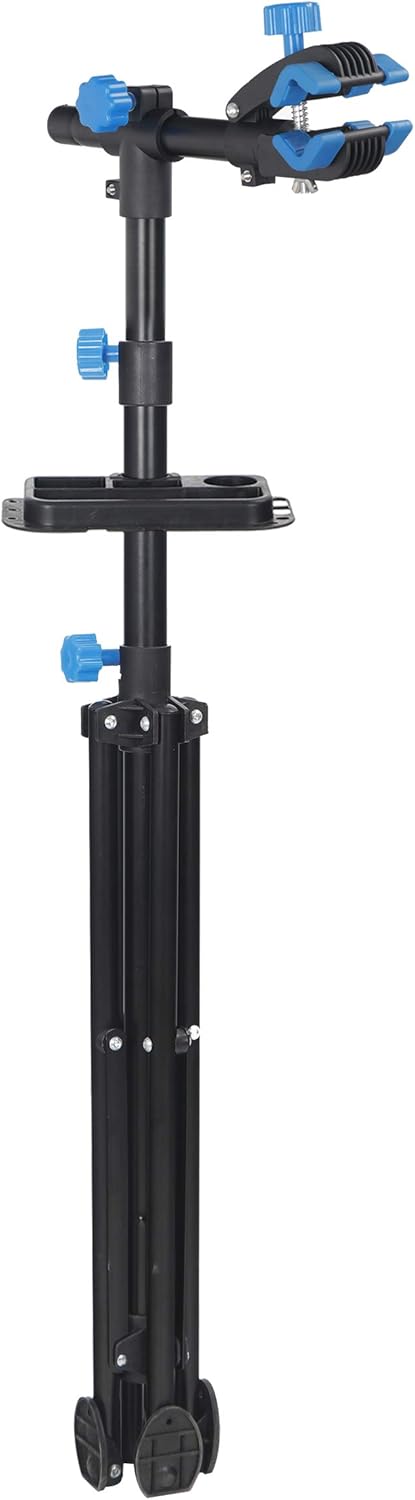 High quality bike repair stand features with 360° swivel head and adjustable height. It is convenient to use our bicycle repair stand no matter you are sitting or standing. Made from sturdy steel, this bike work stand can holds up to 30kg/66 lb. It is a perfect choice for bike enthusiasts, bike clubs, bike shops and bike repair shops. Free tool Tray comes with the stand which is great for all kinds of repair or assembling. >Product Specification: Good quality clamps hold tight without damage your bike's finish Overall Size: 41.33"(L) x 41.33"(W) x 74.01"(H) Foldable Size: 39.37" x 3.93" x 3.93" Tool Tray: 9.84(L)"x 5.11"(W) Adjustable handlebar rod stabilizes the front wheel Pre-drilled holes in feet for anchoring to surfaces Work Horse clamps fit nearly all standard frames from 1" to 1.8" Maximum capacity: 66lbs Material: Q195 Steel Package Includes: 1 x Bicycle Repair Stand 1 x Tools Tray 1 x Adjustable Handlebar Rod 1 x Hex Key 1 x Instruction