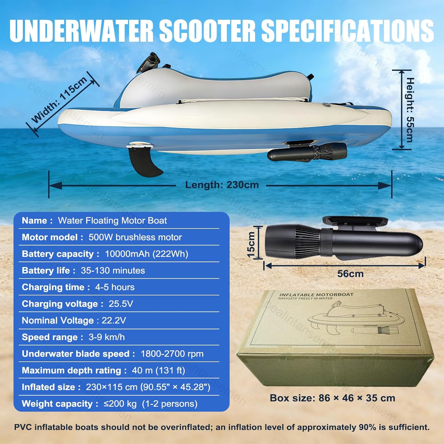Inflatable Electric Motor Boat 3-in-1 – Kayak/Water Scooter/Diving Propulsor, Drop-Stitch PVC Material, Brushless Motor, 200 kg Capacity, for Adults Sea Lake Adventures 500W