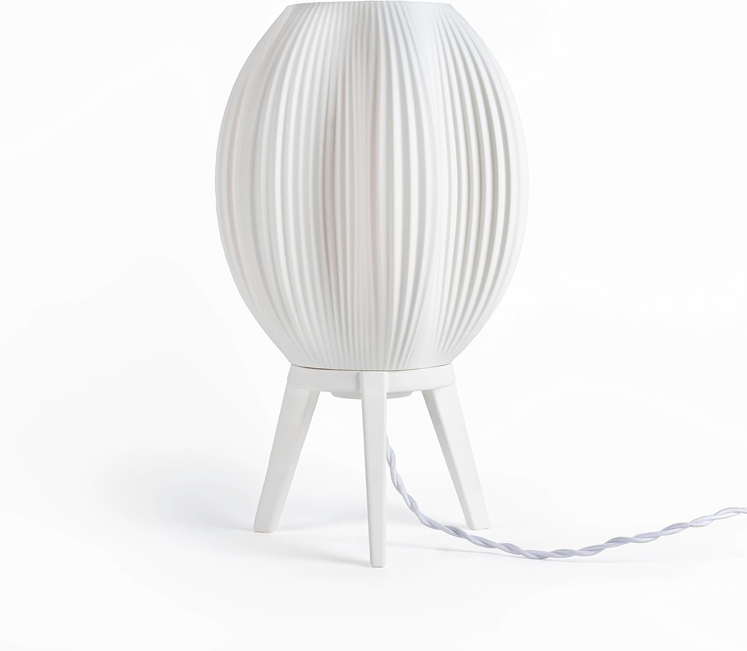 Our wavy 3D printed table lamp sits just shy of 17" tall and brings a modern touch to a variety of rooms. The three-legged base paired with its transitional style shade make for an eye-catching design. With an in-line dimmer switch, this lamp can set any mood.